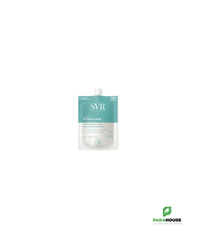 SVR HYDRALIANE CREME 50ML SVR HYDRALIANE CREME est un soin hydratant intense pour tous les types de peaux même sensibles. Douce et confortable, SVR HYDRALIANE CREME est la solution quotidienne 100% d’origine naturelle pour apaiser et hydrater intensément et durablement pendant 24h1. Sa texture fondante enveloppe la peau et la protège. Elle retrouve tout son confort. SVR CREME HUDRATANT contient des ingrédients dermatologiques hydratants à l’efficacité reconnue tels que l’acide hyaluronique et la glycérine issus de l’économie circulaire : ACIDE HYALURONIQUE : hydrate en profondeur GLYCERINE : attire et retient l’eau HUILES VEGETALES : adoucissent et nourrissent PARFUM : frais et délicat Composition : INCI : AQUA/WATER/EAU, HELIANTHUS ANNUUS (SUNFLOWER) SEED OIL, C10-18 TRIGLYCERIDES, GLYCERYL STEARATE SE, GLYCERIN, SORBITOL, PENTYLENE GLYCOL, ZEA MAYS (CORN) STARCH, OLEA EUROPAEA (OLIVE) FRUIT OIL, GLYCERYL CAPRYLATE, PRUNUS AMYGDALUS DULCIS (SWEET ALMOND) OIL, SCLEROTIUM GUM, SODIUM STEAROYL GLUTAMATE, SODIUM HYALURONATE, TOCOPHEROL, CITRIC ACID, HYDROGENATED VEGETABLE OIL, XANTHAN GUM, PARFUM/FRAGRANCE Testée sous contrôle dermatologique, hypoallergénique, au pH physiologique. Poche monomatière 100% recyclable. En plus d’être ultra pratique, elle permet d’économiser 46% de plastique comparé à notre ancien tube 40ml Conseils d'utilisation : Appliquer SVR HYDRALIANE matin et/ou soir sur une peau propre et sèche. Notre conseil : appliquer après avoir bien nettoyé votre peau avec notre Gel Moussant Physiopure. Bonne base de maquillage, non comédogène, fini velouté, non gras-non collant. Pour tous les types de peaux même sensibles de toute la famille. Pour les peaux déshydratées, inconfortables, qui tiraillent.