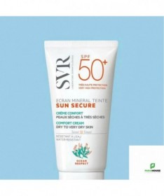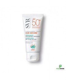 Découvrez le SVR SUN SECURE ÉCRAN MINÉRAL TEINTÉ, spécialement formulé pour les peaux sèches à très sèches. Avec une protection solaire optimale SPF50+, cet écran solaire minéral est un allié incontournable pour préserver votre peau des agressions du soleil tout en offrant une teinte naturelle et unifiée. Sa texture légère et non grasse pénètre rapidement, laissant un fini doux et confortable.Le SVR SUN SECURE MINÉRAL s'applique facilement et se fond parfaitement à votre teint, ce qui en fait un choix idéal pour un usage quotidien. Enrichi en ingrédients hydratants, cet écran teinté est conçu pour répondre aux besoins spécifiques des peaux sèches, apportant une sensation de confort tout au long de la journée. De plus, il est résistant à l'eau et à la transpiration, garantissant une protection durable même lors des activités en extérieur.Adoptez cet écran solaire minéral SPF50 pour une peau protégée, hydratée et sublimée. Offrez à votre visage la défense qu'il mérite tout en affichant un teint éclatant et naturel grâce à ce produit innovant de SVR.Composition :Une formule triple action qui cible tous les types de rayons :Protection physique en surface grâce aux filtres solaires minéraux SPF50+ photostables hautement performantsBouclier cellulaire grâce au complexe Liposomal antioxydant [ß-carotène + Détoxophane®]Réparation des dommages cellulaires dus à lexposition grâce au NiacinamideAQUA (PURIFIED WATER), ZINC OXIDE [NANO], TITANIUM DIOXIDE [NANO], CYCLOPENTASILOXANE, HEXYLDECYL STEARATE, CI 77891, DIMETHICONE, PROPANEDIOL, SODIUM CHLORIDE, CAPRYLYL DIMETHICONE ETHOXY GLUCOSIDE, POLYGLYCERYL-4 ISOSTEARATE, SILICA, ALUMINA, CETYL DIMETHICONE, NIACINAMIDE, TRIDECYL SALICYLATE, BETACAROTENE, CAPRYLHYDROXAMIC ACID, DAUCUS CAROTA SATIVA (CARROT) ROOT EXTRACT, GLYCINE SOJA OIL, HYDROGENATED PHOSPHATIDYLCHOLINE, LECITHIN, LEPIDIUM SATIVUM SPROUT EXTRACT, PHENETHYL ALCOHOL, POLYHYDROXYSTEARIC ACID, GLYCERIN, TITANIUM DIOXIDE, TOCOPHEROL, TOCOPHERYL ACETATE, 1,2-HEXANEDIOL, ALCOHOL, CAPRYLYL GLYCOL, DIMETHICONE/VINYL DIMETHICONE CROSSPOLYMER, DIMETHICONOL, DISODIUM EDTA, LYSOLECITHIN, MAGNESIUM SULFATE, QUATERNIUM-90 BENTONITE, STEARIC ACID, TRIETHOXYCAPRYLYLSILANE, PHENOXYETHANOL, CI 77491, CI 77492, CI 77499