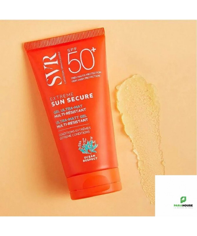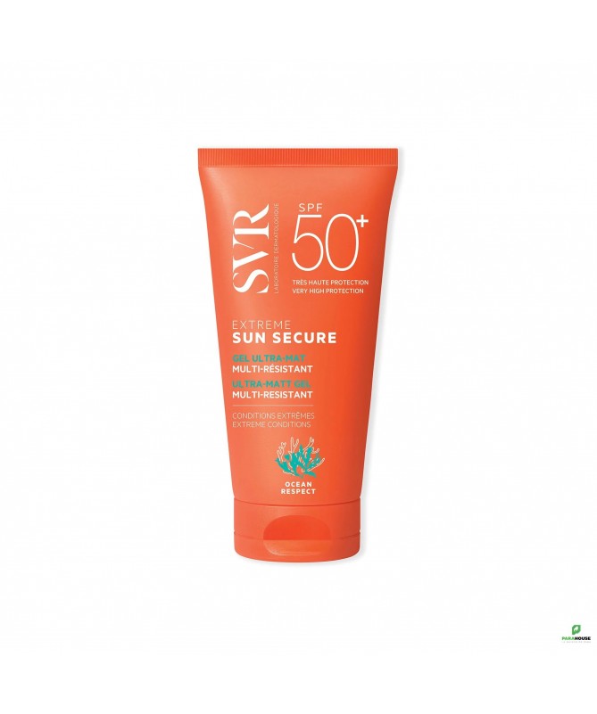 SVR SUN SECURE EXTREME SPF50+ 50ML SUN SECURE Extreme SPF50+ est un gel ultra mat multi-résistant au toucher non gras. Cet ecran svr se carectérise par une texture baume-en-gel transparente et ultra-fondante qui pénètre rapidement pour une application express. SVR SUN SECURE Extreme es t formulé pour le visage et les zones exposées des peaux sensibles à intolérantes au soleil, il sera l’allié idéal d’un ensoleillement extrême. Résiste à l’eau, à la transpiration et aux frottements pour une protection optimale. Au-delà de la protection contre les UVB, les UVA et les UVA longs, une protection renforcée contre les effets délétères et le stress oxydatif induits par les infrarouges et la lumière visible (dont la lumière bleue) afin de lutter contre le vieillissement cutané accéléré grâce au puissant complexe anti-oxydant (Extrait de cresson, Vitamine E) et à la Niacinamide. Enfant à partir de 3 ans , adulte. Non comédogène. Résistante à l’eau, résistante à la transpiration et aux frottements. Composition : LAB20.08/A.11 - INGREDIENTS : ISODODECANE, DIMETHICONE/BIS-ISOBUTYL PPG-20 CROSSPOLYMER, DIISOPROPYL ADIPATE, DIETHYLAMINO HYDROXYBENZOYL HEXYL BENZOATE, ISOPROPYL LAUROYL SARCOSINATE, COCO-CAPRYLATE/CAPRATE, ETHYLHEXYL TRIAZONE, BIS-ETHYLHEXYLOXYPHENOL METHOXYPHENYL TRIAZINE, DIETHYLHEXYL BUTAMIDO TRIAZONE, SILICA DIMETHYL SILYLATE, TOCOPHEROL, CAPRYLIC/CAPRIC TRIGLYCERIDE, PARFUM (FRAGRANCE), GLYCINE SOJA (SOYBEAN) OIL, LEPIDIUM SATIVUM SPROUT EXTRACT Conseils d'utilisation : Il est préférable d'appliquer une dose suffisante et homogène de svr sun secure, Avant de s’exposer au soleil, pour couvrir le visage et les zones exposées. Renouveler fréquemment l’application. Éviter le contact avec les yeux.