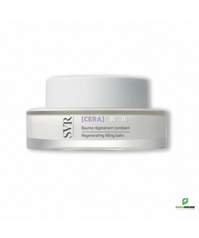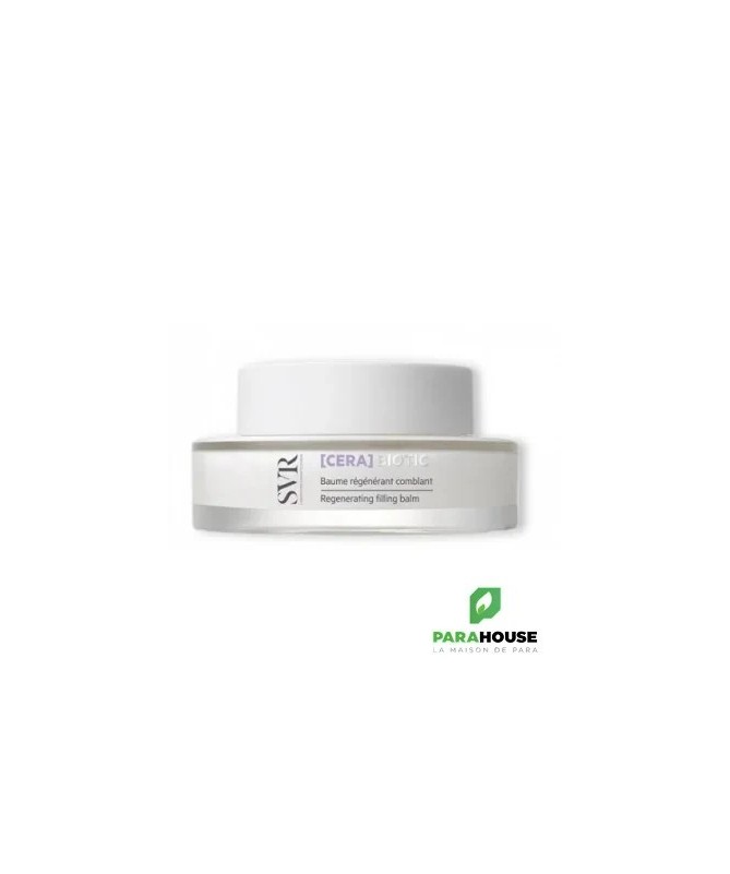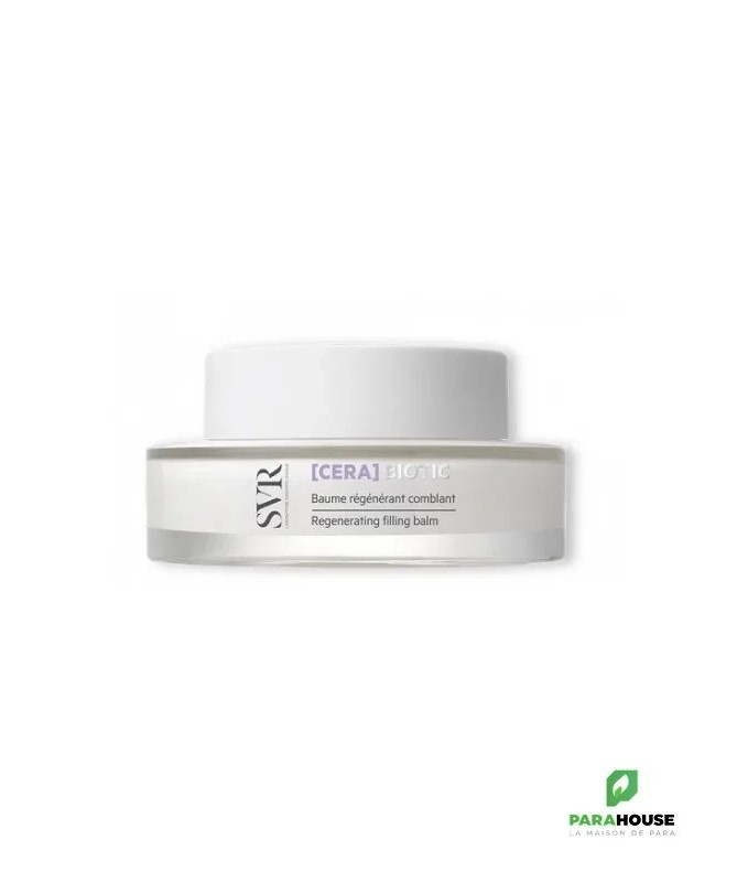 SVR CERA Biotic - Baume Régénérant Comblant Régénérez votre peau avec le SVR CERA Biotic Baume Régénérant. Combinant des actifs essentiels pour la santé de la peau : Vitamine C stabilisée, probiotiques pasteurisés et acide hyaluronique, il répare les radicaux libres induits par les agressions extérieures (pollution, radicaux UV, stimulations hormonales, passage de l’âge). SVR CERA Biotic redonne élasticité et fermeté à la peau relâchée et améliore l'apparence des ridules. SVR baume régénérant comblantaugmente l'hydratation, resserre les pores et réduit la brillance. Associés aux céramides et aux vitamines du complexe B qui stimulent les défenses naturelles de la peau, ils contribuent ainsi au maintien d’une barrière cutanée. Ce baume régénère les cellules pour combler les rides et ridules ainsi que redonner le souffle de la jeunesse à votre peau. Une efficacité immédiate : 95% Une peau immédiatement plus confortable +14% peau lissée Une peau raffermie et lissée après seulement 1 mois : +27% peau plus ferme +42% peau plus lisse -17% rides et ridules Composition : AQUA/WATER/EAU, BUTYLENE GLYCOL, CAPRYLIC/CAPRIC TRIGLYCERIDE, COCO-CAPRYLATE/CAPRATE, ORBIGNYA OLEIFERA SEED OIL, GLYCOL PALMITATE, BEHENYL ALCOHOL, ASCORBYL TETRAISOPALMITATE, ARACHIDYL ALCOHOL, 1,2-HEXANEDIOL, ARACHIDYL GLUCOSIDE, ACRYLATES/C10-30 ALKYL ACRYLATE CROSSPOLYMER, MALTODEXTRIN, PARFUM (FRAGRANCE), CAPRYLYL GLYCOL, XANTHAM GUM, CERAMIDE 3, LACTOBACILLUS FERMENT, PENTAERYTHRITYL TETRA-DI-T-BUTYL HYDROXYHYDROCINNAMATE, SODIUM ACETYLATED HYALURONATE, SODIUM HYDROXIDE Non comédogène. Testé sous contrôle dermatologique et 100% sur peaux sensibles. Conseils d'utilisation : Il est conseillé d'appliquer SVR Baume Regenerant Comblant uniformément matin et/ou soir sur le visage et le cou. Excellente base de maquillage.