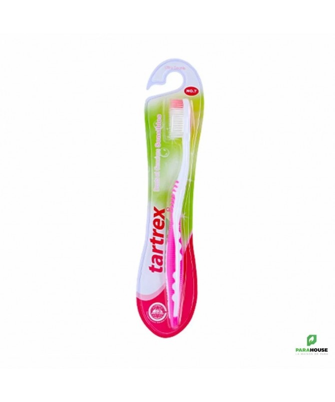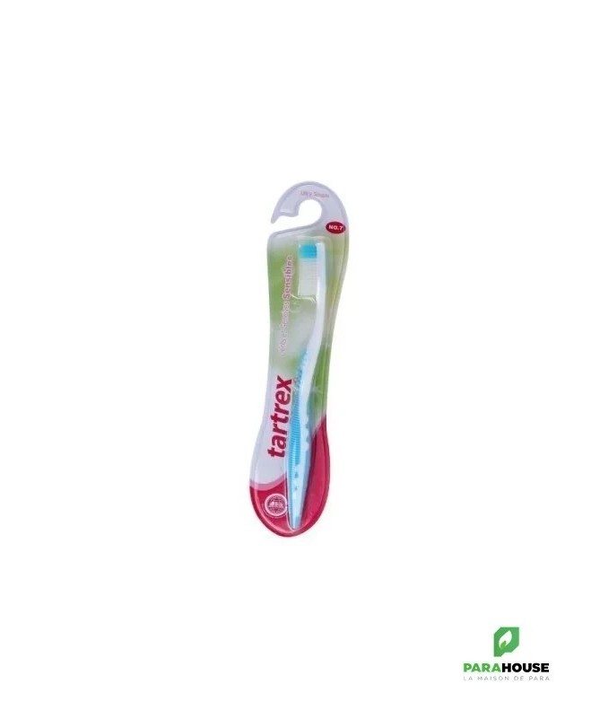 TARTREX brosse à dents ultra-souple TARTREX brosse à dents ultra-souple et douce assure un nettoyage parfait et un détartrage efficace des dents et des gencives sensibles. Les microfilaments garantissent un nettoyage efficace des dents et des tissus inflammés sans les irriter. Conseils d'utilisation : Il est conseillé d'utiliser TARTREX brosse à dents ultra-souple avec TARTREX dentifrice aux potassium & fluor - dents & gencives sensibles ou TARTREX dentifrice aux fluor & sels minéraux - soin complet dents & gencives en complément de TARTREX bain de bouche aux huiles essentielles.