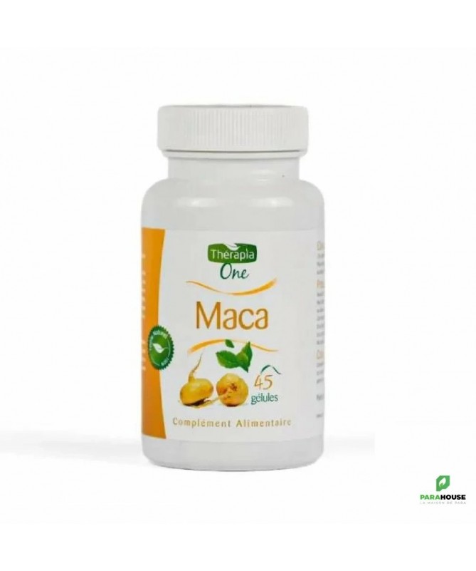 THERAPIA MACA 45 GELULES - Vitalité, Libido et Équilibre Féminin et Masculin MACA est utilisée depuis des siècles pour ses propriétés revitalisantes, elle est aujourd'hui reconnue pour soutenir l'organisme face au stress et à la fatigue. Sa formule 100% naturelle convient aux hommes comme aux femmes adultes. Au-delà d'un simple coup de fouet, THERAPIA MACA agit sur plusieurs fronts. Elle aide à retrouver une énergie durable, réduisant la sensation de fatigue passagère ou chronique. Sur le plan intime, elle contribue à stimuler la libido et à améliorer les fonctions sexuelles, soutenant aussi bien la fertilité que l'équilibre hormonal féminin, notamment lors de la ménopause. Les Avantages Clés de THERAPIA MACA Combat la Fatigue : Redonne tonus et énergie de manière naturelle et durable pour affronter le quotidien avec vitalité. Stimule la Libido : Aide à revigorer le désir sexuel aussi bien chez l'homme que chez la femme, pour une vie intime épanouie. Soutient l'Équilibre Hormonal : Participe à atténuer les troubles liés à la ménopause comme les bouffées de chaleur et les sautes d'humeur. Amélioration des Performances : Contribue à une meilleure fonction érectile chez l'homme et à une augmentation de la fertilité. THERAPIA MACA est particulièrement indiqué dans les situations suivantes : Baisse de libido : Pour les hommes et les femmes expérimentant une baisse de désir sexuel. Fatigue passagère ou chronique : En cas de baisse d'énergie, de stress ou de surmenage. Soutien durant la péri-ménopause et la ménopause : Pour aider à gérer les bouffées de chaleur et les déséquilibres hormonaux. Soutien à la fertilité : En complément d'une hygiène de vie saine pour les couples. Baisse de tonus et de performance physique : Pour les sportifs ou les personnes actives cherchant un regain d'énergie naturel. Composition : La maca ( 450mg de poudre de plante par gélule ) est réputée pour ses effets positifs sur l'activité sexuelle, la libido et la fertilité. Conseils d'utilisation : 2 gélules matin et soir à prendre au moment des repas en cure de 3 mois. Pas d’effets indésirables connus ni d’interaction avec des plantes ou des médicaments.