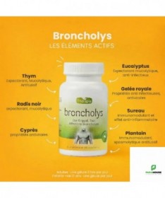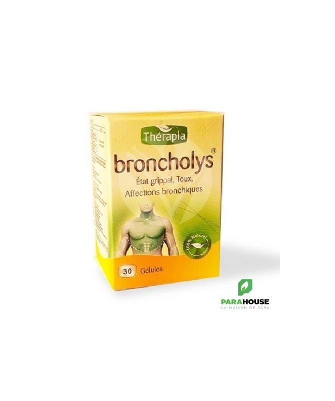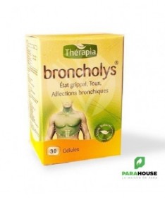 THERAPIA BRONCHOLYS 30 GELULES - Soulagement de la Toux et Affections Bronchiques | Parapharmacie Tunisie THERAPIA BRONCHOLYS se présente comme une solution naturelle et complète pour prendre en charge les troubles respiratoires courants. Spécialement conçu pour les affections bronchiques et l'état grippal, ce complément alimentaire en gélules agit en profondeur pour calmer la toux sous toutes ses formes et soutenir la récupération. Les Avantages Clés: Action Multi-Symptômes : Efficace contre la toux grasse, la toux sèche et la toux liée au tabagisme. Réduction de la Durée des Symptômes : Aide à diminuer l'intensité et la durée de la grippe et des états grippaux. Prévention des Surinfections : Renforce les défenses naturelles des bronches pour éviter les complications. Formule 100% Naturelle : Associe 7 plantes actives (Eucalyptus, Thym, Cyprès, etc.) pour une action synergique et douce. Ajout de Gelée Royale : Combat la fatigue liée à l'infection pour une récupération plus rapide. Convient aux Adultes et Adolescents : Posologie simple et adaptée pour toute la famille (enfants de plus de 12 ans). BRONCHOLYS est particulièrement indiqué dans les situations suivantes : Pour le traitement de la toux : Quel que soit son type (sèche, grasse, irritative), y compris la toux du fumeur. En cas d'état grippal et de rhume : Pour atténuer les symptômes (toux, frissons, fatigue) et accélérer la guérison. Lors d'affections bronchiques : En soutien en cas de bronchite. En prévention en période d'épidémies : Pour renforcer le système immunitaire avant l'hiver ou en cas d'exposition. Pour les personnes fatiguées par l'infection : La gelée royale aide à retrouver tonus et énergie. Composition : Eucalyptus : L'Eucalyptus est connu pour son action anti-inflammatoire importante permet aussi de calmer l'inflammation de l'arbre bronchique. Cyprès : Le cyprès, riche en antioxydants, est utilisé pour traiter le rhume, la toux, la bronchite et d’autres affections pulmonaires. Thym : Le thym calme la toux et soulage les symptômes des affections broncho-pulmonaires Radis noir : Le radis noir est efficace contre la toux grasse et les infections liées aux états grippaux. Gelée royale : La gelée royale lutte contre le stress et la fatique grâce à ses vertus diététiques et revitalisantes. Sureau : Le sureau aide à combattre la fièvre et soulager les symptômes des infections respiratoires. Plantain : Le plantain est efficace contre la toux et les infections des voies respiratoires. Conseils d'utilisation : Adultes : 1 gélule 2 fois par jour. Enfants de plus de 12 ans : 1 gélule par jour. Il est contre indiqué dans les cas suivants : Allergie aux produits de la ruche. Insuffisance hépatique ou rénale. Femme enceinte et allaitante. Ne pas dépasser la posologie recommandée