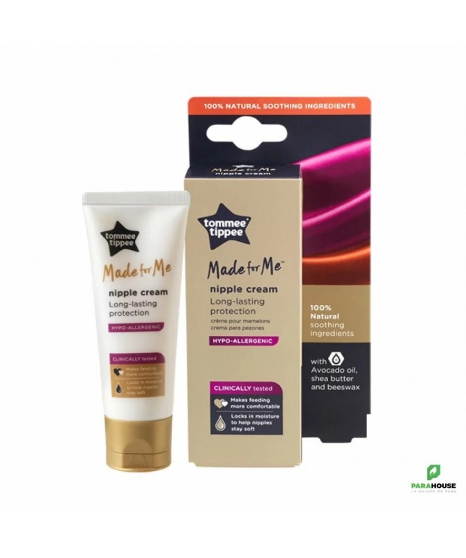 TOMMEE TIPPEE MADE FOR ME CREME MAMELON TOMMEE TIPPEE MADE FOR ME CREME MAMELON aide à apaiser les mamelons et à garder l'humidité pour prévenir les douleurs tout au long de votre expérience d'allaitement. Il permet une protection longue durée et maintient l’hydratation de la peau pour des mamelons doux et souples, et offre aux nouvelles mamans un confort optimal tout au long de la période d’allaitement Sa formule est à base de trois ingrédients naturels uniquement : à base d’huile d’avocat, de cire d’abeille et de beurre de karité, cette formule ne présente aucun risque ni pour les nourrissons ni pour les mamans. Hypoallergénique, sans parabens ni produits dérivés du pétrole, lanoline ou conservateurs