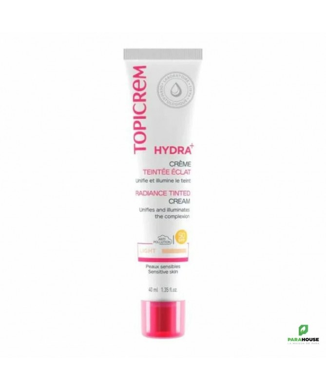 TOPICREM HYDRA+ CREME TEINTEE ECLAT SPF50 LIGHT 50ML TOPICREM HYDRA+ CRÈME TEINTÉE ÉCLAT est une crème pour le visage qui permet d'intégrer la couleur et la luminosité au teint de la peau pour une apparence uniforme. Elle est également dotée d'un facteur de protection solaire SPF50 qui protège la peau des rayons UVA et UVB. Par conséquent, elle empêche les radicaux libres et les oxydants de nuire à votre santé. Il bloque également la pollution atmosphérique, et laisse derrière lui un fini naturel. TOPICREM TEINTEE est indiquée pour celles qui souhaitent protéger leur peau des rayons UV du Soleil et apporter de l'éclat. Surtout pour les peaux sensibles. Résultats : 100% : Effet peau nue 100% : Tient tout au long de la journée 96% : Couvre les irrégularités du teint Composition : CREME TEINTEE CLAIRE : AQUA (WATER) . DICAPRYLYL CARBONATE . CI 77891 (TITANIUM DIOXIDE) . DIBUTYL ADIPATE . GLYCERIN . DIETHYLAMINO HYDROXYBENZOYL HEXYL BENZOATE . BIS-ETHYLHEXYLOXYPHENOL METHOXYPHENYL TRIAZINE . ETHYLHEXYL TRIAZONE . PENTYLENE GLYCOL . CETEARYL ALCOHOL . CETEARYL GLUCOSIDE . INOSITOL . HYDROXYETHYL ACRYLATE/SODIUM ACRYLOYLDIMETHYL TAURATE COPOLYMER . BETAINE . DISODIUM CETEARYL SULFOSUCCINATE . TAURINE . CI 77492 (IRON OXIDES) . HYDROXYACETOPHENONE . PARFUM (FRAGRANCE) . CI 77491 (IRON OXIDES) . ALUMINUM HYDROXIDE . CAPRYLYL GLYCOL . CHLORPHENESIN . CI 77499 (IRON OXIDES) . ALGIN . O-CYMEN-5-OL . SORBITAN ISOSTEARATE . BIOSACCHARIDE GUM-1 . CITRIC ACID . SODIUM LEVULINATE . GLYCERYL CAPRYLATE . MALTODEXTRIN . MORINGA OLEIFERA SEED EXTRACT . P-ANISIC ACID . TOCOPHEROL CREME TEINTEE MEDIUM : AQUA (WATER) . DICAPRYLYL CARBONATE . DIBUTYL ADIPATE . CI 77891 (TITANIUM DIOXIDE) . GLYCERIN . DIETHYLAMINO HYDROXYBENZOYL HEXYL BENZOATE . BIS-ETHYLHEXYLOXYPHENOL METHOXYPHENYL TRIAZINE . ETHYLHEXYL TRIAZONE . PENTYLENE GLYCOL . CI 77492 (IRON OXIDES) . CETEARYL ALCOHOL . CETEARYL GLUCOSIDE . INOSITOL . HYDROXYETHYL ACRYLATE/SODIUM ACRYLOYLDIMETHYL TAURATE COPOLYMER . BETAINE . DISODIUM CETEARYL SULFOSUCCINATE . TAURINE . CI 77491 (IRON OXIDES) . HYDROXYACETOPHENONE . PARFUM (FRAGRANCE) . CAPRYLYL GLYCOL . ALUMINUM HYDROXIDE . CHLORPHENESIN . CI 77499 (IRON OXIDES) . ALGIN . O-CYMEN-5-OL . SORBITAN ISOSTEARATE . BIOSACCHARIDE GUM-1 . CITRIC ACID . SODIUM LEVULINATE . GLYCERYL CAPRYLATE . MALTODEXTRIN . MORINGA OLEIFERA SEED EXTRACT . P-ANISIC ACID . TOCOPHEROL Non comédogène. Testée sous contrôle dermatologique et ophtalmologique. Conseils d'utilisation : Il est conseillé d'appliquer TOPICREM HYDRA+ CREME TEINTEE ECLAT sur le visage et le cou. Prélever 1 grande noisette de produit dans la paume de la main. Chauffer la crème teintée en pressant entre les 2 paumes. Déposer la crème teintée sur le front & le menton, sur les joues, et finir avec le cou Effectuer des mouvements de lissage de l'intérieur vers l'extérieur, sur l'ensemble du visage et du cou.