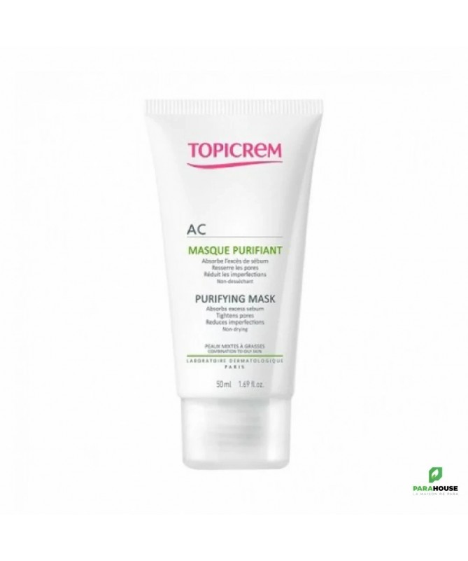 TOPICREM AC MASQUE PURIFIANT TOPICREM AC MASQUE PURIFIANT est un soin ultra-purifiant qui a une triple action immédiate pour obtenir une peau nette et parfaite. Il permet d'absorption instantanée des toxines, de l'excédent de sébum, des impuretés, de réduire les imperfections et leurs marques et aide à resserrer les pores. Les propriétés purifiantes et apaisantes du MASQUE PURIFIANT révèlent une peau plus lisse, veloutée, fraiche et rafraîchie. Sa texture onctueuse et fraiche offre un confort maximal à l'application, tandis que son parfum floral et fruité fera de ce moment de détente un véritable moment de plaisir. DES RÉSULTATS PROUVÉS 100% : Purifie la peau 94% : Absorbe l'excès de sébum 90% : Resserre les pores Composition : INGREDIENTS : AQUA (WATER), ILLITE, GLYCERIN, CAPRYLIC/CAPRIC TRIGLYCERIDE, CI 77891 (TITANIUM DIOXIDE), KAOLIN, CETEARYL ALCOHOL, CETYL ALCOHOL, MONTMORILLONITE, BUTYROSPERMUM PARKII (SHEA) BUTTER, CETEARYL GLUCOSIDE, FUCUS SPIRALIS EXTRACT, TETRASELMIS CHUI EXTRACT, SODIUM HYALURONATE, MARRUBIUM VULGARE EXTRACT, MALACHITE EXTRACT, PARFUM (FRAGRANCE), XANTHAN GUM, ETHYLHEXYLGLYCERIN, CAPRYLYL GLYCOL, TETRASODIUM GLUTAMATE DIACETATE, CITRIC ACID, SODIUM BENZOATE, POTASSIUM SORBATE, BENZYL ALCOHOL Testé sous contrôle dermatologique. Conseils d'utilisation : Il est conseillé d'appliquer TOPICREM AC MASQUE PURIFIANT en couche épaisse sur le visage, laisser poser 5 à 10 minutes puis rincer. 2 fois par semaine. Éviter le contour des yeux