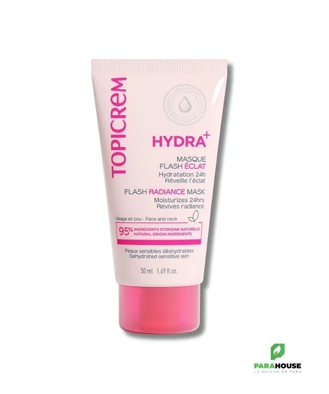TOPICREM HYDRA+ Masque Hydratant ÉclatOffrez à votre peau sensible et déshydratée un véritable bain d’hydratation avec le Masque HYDRA+. Sa formule enrichie en complexe minéral détoxifie, ravive l’éclat du teint et procure une hydratation immédiate et durable.Grâce à sa texture onctueuse, il apaise la peau et la rend visiblement plus lumineuse. Testé sous contrôle dermatologique. Non comédogène.Conseils d'utilisation- Appliquer en couche épaisse sur le visage et le cou, laisser poser 10 minutes puis rincer à l'eau.- En masque de nuit : appliquer une fine couche le soir, laisser poser toute la nuit et suivre votre routine au réveil.- Utilisation recommandée : 1 à 2 fois par semaine.- Éviter le contour des yeux.IngrédientsAqua (Water), Butyrospermum Parkii (Shea) Butter, Glycerin, Cetyl Alcohol, Squalane, Coco-Caprylate/Caprate, Erythritol, Glyceryl Stearate Citrate, Octyldodecyl PCA, Inositol, Betaine, Taurine, 1,2-Hexanediol, Glyceryl Caprylate, Sodium Citrate, Xanthan Gum, Chlorphenesin, Parfum (Fragrance), Sodium Gluconate, Sodium Hyaluronate, Tocopherol, Pentylene Glycol, Magnesium Aspartate, Zinc Gluconate, Helianthus Annuus (Sunflower) Seed Oil, Copper Gluconate.