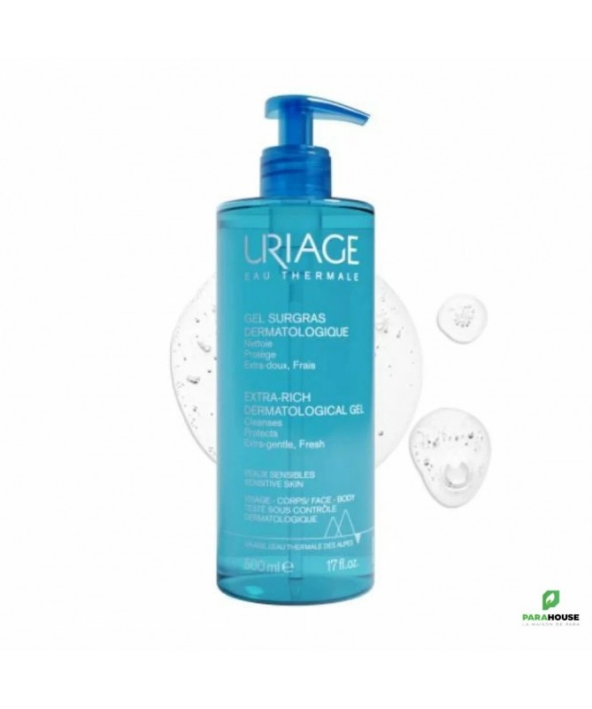 URIAGE Gel Surgras Liquide Dermatologique - Nettoie, Hydrate, Protège URIAGE Gel Surgras est Frais et extra-doux, le surgras liquide nettoie et améliore le confort de la peau tout en respectant le film hydrolipidique. La peau est parfaitement nettoyée, hydratée et apaisée. Un soin agréable au quotidien pour toute la famille. URIAGE Gel Surgras Liquide Dermatologique : Nettoie: Sa base lavante douce sans savon élimine toutes les impuretés de la peau sans agresser. Préserve du déssechement: Ses actifs surgraissants et hydratants améliorent le confort cutané. Conseils d'utilisation : Il est recommandé de Faire mousser URIAGE Gel Surgras avec de l’eau puis rincer. Composition: AQUA (WATER, EAU) — SODIUM LAURETH SULFATE — PEG-80 GLYCERYL COCOATE — GLYCERIN — SODIUM CHLORIDE — SODIUM COCOAMPHOACETATE — SODIUM LAURETH-8 SULFATE — SODIUM METHYL COCOYL TAURATE — PARFUM (FRAGRANCE) — COCO-GLUCOSIDE — GLYCERYL OLEATE — CAPRYLYL GLYCOL — CITRIC ACID — SODIUM BENZOATE — MAGNESIUM LAURETH SULFATE — SODIUM OLETH SULFATE — MAGNESIUM LAURETH-8 SULFATE — MAGNESIUM OLETH SULFATE — TOCOPHEROL — HYDROGENATED VEGETABLE GLYCERIDES CITRATE