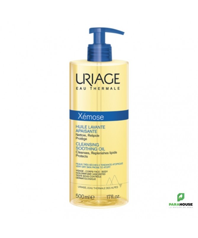 URIAGE XÉMOSE HUILE LAVANTE APAISANTE 500ML - NETTOIE, RELIPIDE, APAISE URIAGE XEMOSE HUILE LAVANTE APAISANTE protège de la déshydratation de la peau et apaise les sensations de démangeaisons. Sa mousse fine et extra-douce apporte un confort immédiat et durable aux peaux sèches à très sèches et atopiques. URIAGE XEMOSE HUILE LAVANTE : Nourrit : Grâce à sa haute concentration en glycérine, l’huile Xémose laisse un film protecteur non gras qui protège la peau des agressions extérieures. Apaise : Riche en dérivé de beurre de karité, elle apaise et soulage les sensations de démangeaisons, tiraillements et inconfort. Résultats -75% de tiraillements. Composition : AQUA (WATER, EAU) — GLYCERIN — HYDROGENATED STARCH HYDROLYSATE — SODIUM COCOAMPHOACETATE — PEG-7 GLYCERYL COCOATE — SODIUM COCOYL GLUTAMATE — SODIUM LAURETH SULFATE — SODIUM LAURETH-8 SULFATE — CETEARETH-60 MYRISTYL GLYCOL — POLYSORBATE 20 — COCO-GLUCOSIDE — GLYCERYL OLEATE — SODIUM CHLORIDE — CITRIC ACID — MAGNESIUM LAURETH SULFATE — SODIUM OLETH SULFATE — POLYQUATERNIUM-10 — MAGNESIUM LAURETH-8 SULFATE — PEG-75 SHEA BUTTER GLYCERIDES — MAGNESIUM OLETH SULFATE — SODIUM ACETATE — BRASSICA CAMPESTRIS STEROLS — RASPBERRY SEED OIL/PALM OIL AMINOPROPANEDIOL ESTERS Glycérine - Dérivé de beurre de karité - Sans savon - Non parfumé - Testé sous contrôle dermatologique Conseils d'utilisation : Il est conseillé d'appliquer XEMOSE HUILE LAVANTE et faire mousser sur une peau mouillée, rincer et sécher délicatement.
