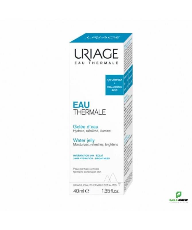 URIAGE EAU THERMALE GELEE D'EAU 40ML - Hydrate, Illumine, Effet frais URIAGE EAU THERMALE GELEE D'EAU avec la texture gel ultra-fraîche fond délicieusement au contact de la peau pour l’infuser de son complexe hydratant unique. Intensément hydratée, la peau révèle son éclat. Le teint est frais, le grain de peau est lissé. La gelée sera particulièrement adaptée aux peaux normales à mixtes. URIAGE EAU THERMALE GELEE D'EAU : Régénère l’hydratation de la peau Cette Gelée d'EAU enrichie en Eau Thermale d’Uriage aide à reconstruire la barrière cutanée pour maintenir un taux d’hydratation optimal. Optimise l’hydratation en continu de l’épiderme Permet de reformer un film de surface et de libérer progressivement les agents hydratants qu’il contient. Restaure l’effet barrière de la peau et limite sa déshydratation Agit sur la reconstruction du ciment cornéocytaire pour booster durablement l’hydratation. Composition : AQUA (WATER, EAU) ● BUTYLENE GLYCOL ● DIGLYCERIN ● DIMETHICONE ● XYLITYLGLUCOSIDE ● 1,2-HEXANEDIOL ● ACRYLATES/C10-30 ALKYL ACRYLATE CROSSPOLYMER ● ANHYDROXYLITOL ● GLYCERIN ● TREHALOSE ● UREA ● XYLITOL ● CHLORPHENESIN ● SODIUM HYALURONATE ● PEG-40 HYDROGENATED CASTOR OIL ● POLYSILICONE-11 ● SODIUM HYDROXIDE ● GLUCOSE ● o-CYMEN-5-OL ● PARFUM (FRAGRANCE) ● PENTYLENE GLYCOL ● SERINE ● CAPRYLYL GLYCOL ● ALGIN ● DISODIUM PHOSPHATE ● GLYCERYL POLYACRYLATE ● PULLULAN ● DECYL GLUCOSIDE ● POTASSIUM PHOSPHATE ● PHENOXYETHANOL ● HEXYLENE GLYCOL Résultats HYDRATATION : +121% ÉCLAT : 89% NON GRAS : 100% Conseils d'Utilisation: Appliquer URIAGE EAU THERMALE GELEE D'EAU matin et/ou soir sur le visage et le décolleté parfaitement nettoyés. Eviter le contact avec les yeux.