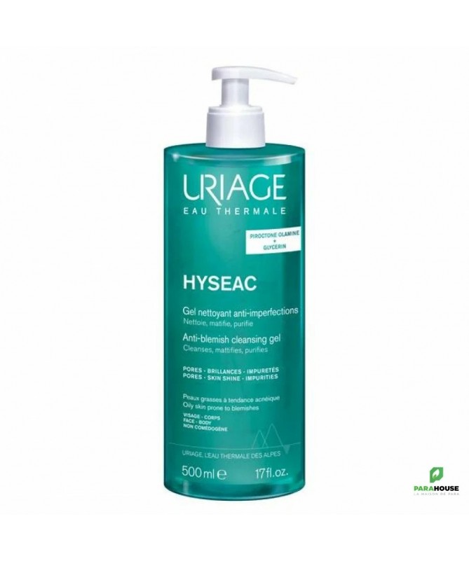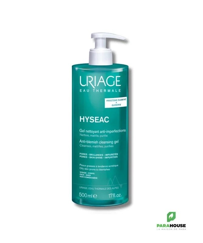 URIAGE HYSÉAC Gel Nettoyant 500ML URIAGE HYSEAC Gel Nettoyant élimine impuretés et excès de sébum, tout en respectant parfaitement l’épiderme. Sa haute rinçabilité, son aspect moussant au contact de l’eau et son léger parfum caractéristique de la gamme Hyséac en font un produit très agréable à utiliser au quotidien. La peau est plus nette, plus saine, plus fraîche. Uriage hyseac gel nettoyant : Nettoie : Un nettoyage ultra doux sans savon qui se rince à l’eau. Elimine les impuretés : Formulé spécifiquement pour les peaux mixtes à grasses, ce gel élimine les impuretés et les excès de sébum. Composition : AQUA (WATER, EAU) — CITRIC ACID — COCO-GLUCOSIDE — EPILOBIUM ANGUSTIFOLIUM FLOWER/LEAF/STEM EXTRACT — GLYCERYL OLEATE — GLYCINE — HYDROGENATED VEGETABLE GLYCERIDES CITRATE — MAGNESIUM LAURETH SULFATE — MAGNESIUM LAURETH-8 SULFATE — MAGNESIUM OLETH SULFATE — PARFUM (FRAGRANCE) — PEG-80 GLYCERYL COCOATE — PHENOXYETHANOL — PIROCTONE OLAMINE — PPG-2 HYDROXYETHYL COCAMIDE — PPG-2 HYDROXYETHYL COCO/ISOSTEARAMIDE — SODIUM COCOAMPHOACETATE — SODIUM LAURETH SULFATE — SODIUM LAURETH-8 SULFATE — SODIUM METABISULFITE — SODIUM METHYL COCOYL TAURATE — SODIUM OLETH SULFATE — TOCOPHEROL URIAGE Gel Nettoyant : Eau Thermale d’Uriage Base lavante sans savon Piroctone olamine Extrait d’Epilobe Glycocolle Testé sous contrôle dermatologique Non comédogène pH physiologique Conseils d'utilisation : Faire mousser une noisette de Uriage gel nettoyant dans les mains et appliquer sur le visage et le corps humidifié. Rincer abondamment. A utiliser matin et soir.