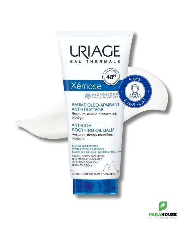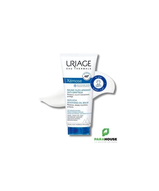 Découvrez le baume apaisant URIAGE XEMOSE, spécialement formulé pour les peaux sèches et sensibles. Ce soin hydratant intense offre une solution efficace pour nourrir et réparer la barrière cutanée, procurant une sensation de confort immédiat. Grâce à sa texture onctueuse et fondante, ce baume pénètre rapidement sans laisser de film gras, idéal pour un usage quotidien.Enrichi en actifs hydratants et en agents apaisants, le baume URIAGE XEMOSE aide à réduire les sensations d'inconfort et de tiraillement. Il est particulièrement recommandé pour les peaux sujettes à la sécheresse ou à des affections cutanées telles que l'eczéma. Avec une application régulière, votre peau retrouve douceur et élasticité, tout en étant protégée des agressions extérieures.Adoptez le baume apaisant URIAGE XEMOSE pour offrir à votre peau les soins hydratants dont elle a besoin. Ses propriétés dermatologiques en font un allié de choix pour un quotidien sans démangeaisons ni irritations.Uriage Xémose Baume Oléo Apaisant 200ml. Contient : Eau thermale d'Uriage, Beurre de karité, Glycérine, Huile de sésame, Cire d'abeille, Agents hydratants, Agents apaisants. Composition :Formule INCI : Aqua (Water, Eau) , C13-15 Alkane , Hydrogenated Polydecene , Butyrospermum Parkii (Shea Butter) , Cetearyl Ethylhexanoate , Isononyl Isononanoate , Beheneth-25 , Butylene Glycol , Glycerin , 1,2-Hexanediol , Shorea Stenoptera Seed Butter , Brassica Campestris (Rapeseed) Sterols , Chlorphenesin , Xanthan Gum , Acrylates/C10-30 Alkyl Acrylate Crosspolymer , Sodium Polyacrylate , O-Cymen-5-Ol , Tocopheryl Acetate , Raspberry Seed Oil/Palm Oil Aminopropanediol Esters , Sodium Hydroxide , Asiaticoside , Phytosphingosine , Borage Seed Oil Aminopropanediol Amides , Citric Acid