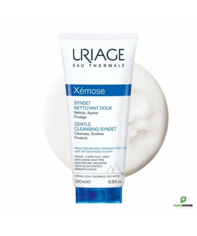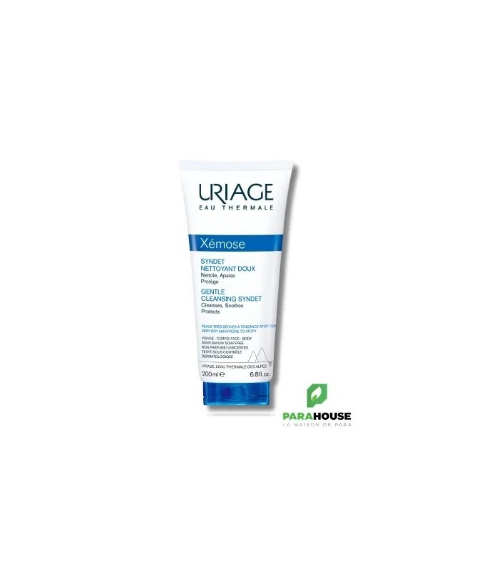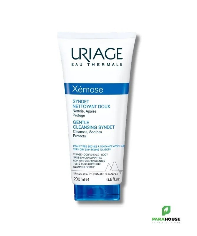 URIAGE Xemose Syndet Nettoyant Doux - Nettoie, Apaise, Hydrate URIAGE Xemose Syndet Nettoyant Doux est destiné aux peaux très sèches et à tendance atopique sujettes de démangeaisons, tiraillements et irritations. Sa texture extrêmement douce, enrichie en agents surgras fond sur la peau et la nettoie sans perturber l’équilibre du pH de la peau. Syndet doux : Apaise : L’Eau Thermale d’Uriage, naturellement riche en minéraux et oligo-éléments, apaise les peaux les plus sèches. Nettoie : Sa base lavante extra-douce élimine les impuretés de la peau sans agresser, grâce à son pH physiologique. Préserve : Les agents surgraissants spécifiques associés au complexe breveté Cérasterol-2F préservent de l’effet desséchant de l’eau et redonnent du confort à la peau. Composition : AQUA (WATER, EAU) — SODIUM LAURETH SULFATE — GLYCERIN — DECYL GLUCOSIDE — COCAMIDOPROPYL BETAINE — SODIUM CHLORIDE — SODIUM METHYL COCOYL TAURATE — GLYCOL DISTEARATE — POLYACRYLATE CROSSPOLYMER-6 — COCO-GLUCOSIDE — CAPRYLYL GLYCOL — SODIUM BENZOATE — GLYCERYL OLEATE — CITRIC ACID — GLYCERYL STEARATE — BENZOIC ACID — SAFFLOWER OIL/PALM OIL AMINOPROPANEDIOL ESTERS — POLYGLYCERYL-10 STEARATE — TRIETHYL CITRATE — POLYGLYCERYL-6 BEHENATE — TOCOPHEROL — BEHENIC ACID — CERAMIDE NP — CETEARYL ALCOHOL — CHOLESTEROL — LACTIC ACID — HYDROGENATED VEGETABLE GLYCERIDES CITRATE — CERAMIDE NS — CERAMIDE EOP — CERAMIDE AP — SODIUM CETEARYL SULFATE Conseils d'utilisation : Il est conseillé d'Appliquer le syndet nettoyant doux Uriage Xémose sur la peau du corps préalablement humidifiée.