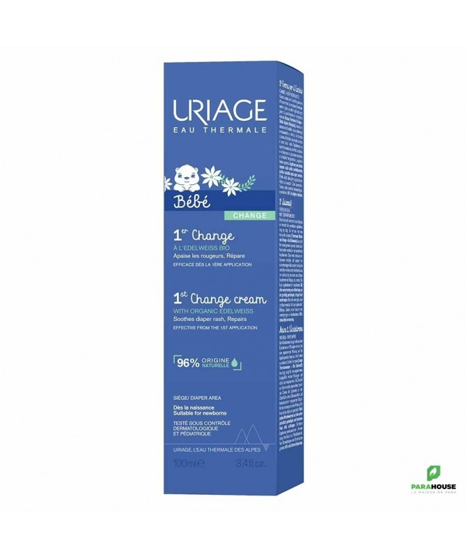 URIAGE BEBE 1er CHANGE PRÉVENTION ET SOIN DES ROUGEURS DU SIÈGE 100ML URIAGE BEBE 1er CHANGE prévient efficacement l’apparition des rougeurs et répare l’épiderme fragilisé au quotidien par les couches. Sa formule au complexe naturel [Eau Thermale d'Uriage + Edelweiss bio] apaise les sensations d'inconfort, favorise la diminution des rougeurs et renforce la barrière cutanée. Enrichie en oxyde de zinc et en cire d'abeille, elle isole l’épiderme en surface sans effet occlusif et favorise sa réparation en laissant un film protecteur invisible. La peau est apaisée et protégée. URIAGE BEBE 1er CREME CHANGE : APAISE & DIMINUE LES ROUGEURS : Sa formule au complexe [Eau thermale d’Uriage + Edelweiss bio] protège des irritations, calme les sensations d’inconfort et renforce la barrière cutanée. PURIFIE, PROTEGE & REPARE : L’oxyde de Zinc aux propriétés purifiantes, associée à la Cire d’abeille, au beurre de Karité et à des huiles végétales, protège la peau de bébé des agressions causées par l’urine et les selles en formant un véritable bouclier non occlusif sur la peau et aide à la réparer. Efficace dès la 1ère application. Conseils d'utilisation: Il est recommandé d'utiliser de manière préventive ou en période de crise. Uriage change bebe s'applique en couche épaisse sur une peau parfaitement propre et sèche après chaque change. Composition Pas de parfum Testé sous contrôle dermatologique et pédiatrique Emulsion couvrante & absorbante Haute tolérance AQUA (WATER, EAU) — HELIANTHUS ANNUUS SEED OIL — ZINC OXIDE — DICAPRYLYL CARBONATE — POLYGLYCERYL-2 DIPOLYHYDROXYSTEARATE — GLYCERIN — BUTYROSPERMUM PARKII BUTTER — BUTYLENE GLYCOL — CERA ALBA (BEESWAX) — SIMMONDSIA CHINENSIS SEED OIL — SODIUM CHLORIDE — STEARALKONIUM BENTONITE — POLYGLYCERYL-3 DIISOSTEARATE — MAGNESIUM SULFATE — PROPANEDIOL — TOCOPHERYLACETATE — CITRIC ACID — TOCOPHEROL — LEONTOPODIUM ALPINUM FLOWER/LEAF EXTRACT