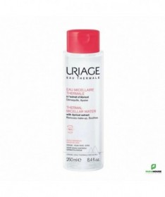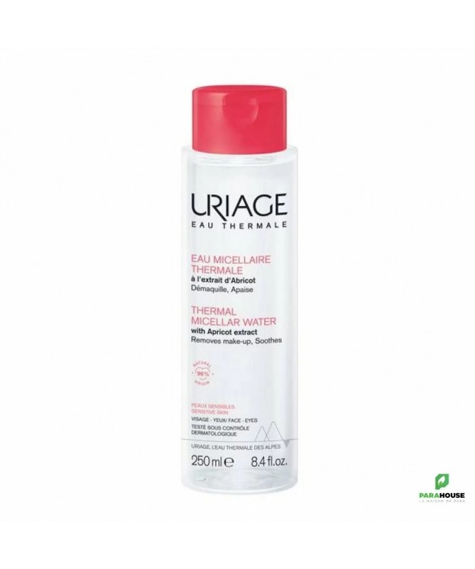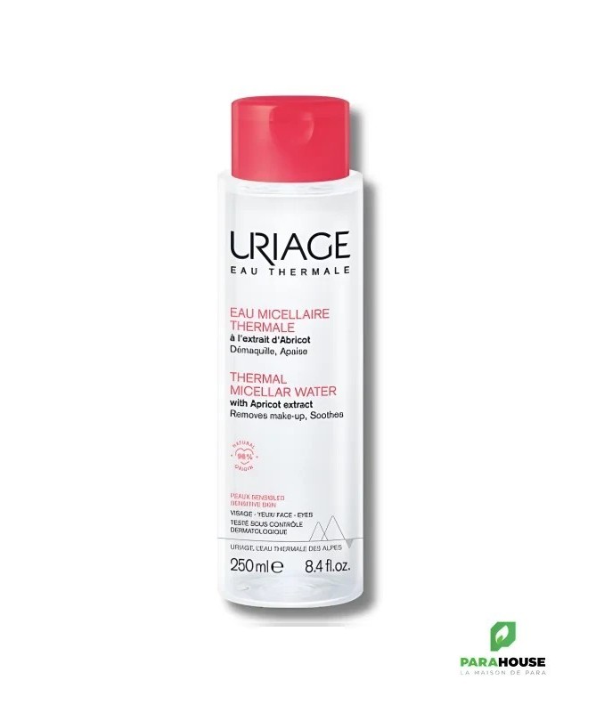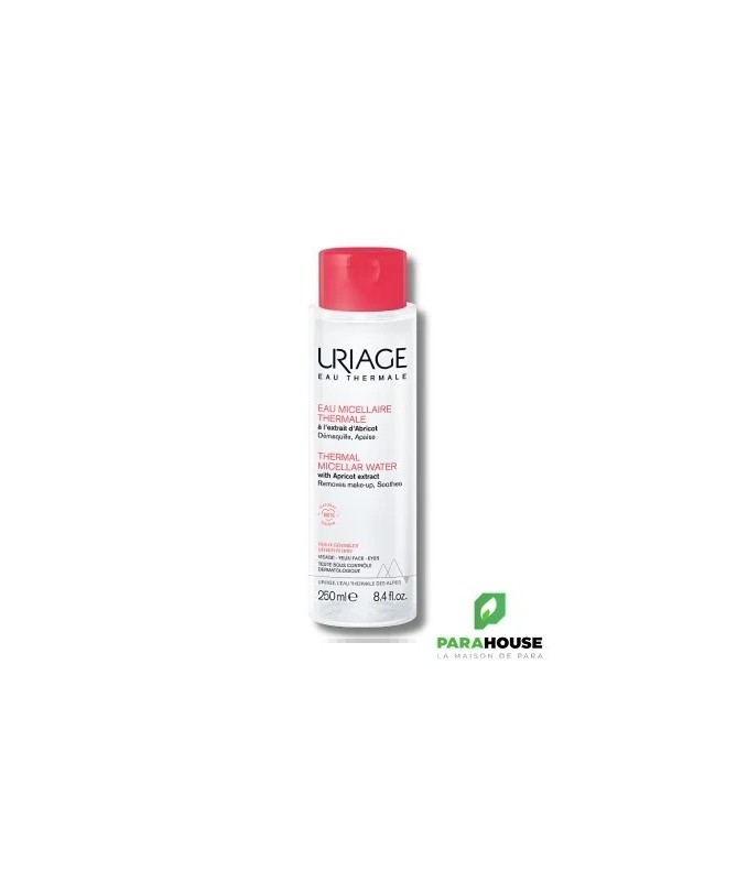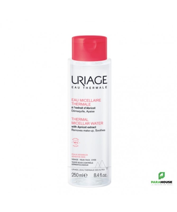 URIAGE EAU MICELLAIRE THERMALE APAISE 250ML Les Eaux Micellaires Thermales d’Uriage sont parfaitement adaptées au démaquillage de toutes les peaux grâce aux propriétés uniques de l’Eau Thermale d’Uriage. Leurs tensioactifs non ioniques doux, constitutifs des micelles, agissent comme des aimants capturant efficacement le maquillage et les impuretés. Notre nouvelle formule d'eau micellaire peaux sensibles est constituée de 96% d'ingrédients d'origine naturelle et participe aux défenses naturelles de la peau grâce à notre nouveau brevet LN MODUL. URIAGE EAU MICELLAIRE : DÉMAQUILLE ET NETTOIE : Cette eau micellaire aux tensioactifs non ioniques doux élimine en douceur toutes les impuretés de la peau et tous types de maquillage, même waterproof. APAISE ET DIMINUE LES SENSATIONS DE TIRAILLEMENTS : Enrichie en extrait d’abricot et Eau Thermale d’Uriage, cette eau micellaire apaise la peau tout en lui apportant du confort. PARTICIPE A LA DÉFENSE NATURELLE DE LA PEAU : Notre nouveau brevet LN MODUL repose sur l’action de notre ETU sur la langerine (LN). Les langerines sont des glycoprotéines, dont le rôle est de détecter les microbes au sein de notre organisme et d’activer les défenses immunitaires. Notre eau thermale va venir stimuler la langerine pour une bonne vigilance vis-à-vis des microbes. L’eau thermale d’URIAGE vient ainsi booster ce système de défenses naturelles et renforcer la barrière immune. Conseils d'utilisation : Il est préférable d'imbibez un coton d’Eau Micellaire Thermale et passez délicatement sur le visage, les yeux et le cou pour nettoyer, sans rinçage. Vaporisez de l’Eau Thermale d’Uriage sur l’ensemble du visage et laissez pénétrer. Ne pas sécher. Terminez en appliquant votre soin quotidien. Composition : 96% d’ingrédients d’origine naturelle — Eau Thermale d’Uriage — Glycérine — Extrait d’abricot — Brevet LN MODUL — Tensioactifs non ioniques doux –- Parfum fruité et floral –- Testé sous contrôle dermatologique et ophtalmologique AQUA (WATER, EAU) — POLYSORBATE 20 — GLYCERIN — POLOXAMER 184 — CAPRYLYL/CAPRYL GLUCOSIDE — CETRIMONIUM BROMIDE — POLYAMINOPROPYL BIGUANIDE — PARFUM (FRAGRANCE) — PRUNUS ARMENIACA FRUIT EXTRACT — CITRIC ACID — ASCORBIC ACID