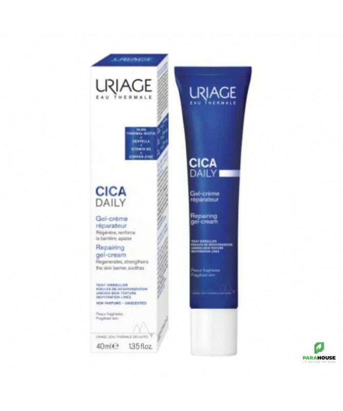 URIAGE CICA DAILY GEL CREME 40ML - Inconfort, imperfections, rougeurs, marques Teint terne, inconfort, signes de fatigue, ridules, petites imperfections ou rougeurs...Les peaux fragilisées particulièrement exposées à ces agressions ne sont plus protégées comme avant. Uriage CICA DAILY Gel crème est le soin hydratant protecteur et réparateur idéal des peaux agressées et fragilisées quotidiennement. L’Eau Thermale d’Uriage associé a un prébiotique, l’Inuline, offer une action rééquilibrante unique sur la barrière cutanée. La formule de Bariéderm CICA DAILY Gel crème à base de Centella Asiatica réparatrice, associée à de l’Acide Hyaluronique Haut et Bas poids moléculaire, et de la Vitamine B5 permet d’Hydrater immédiatement la peau et de la Réparer. L'ingrédient Cuivre-Zinc aide à lutter contre le dessèchement de la peau, lui laissant un niveau optimal de protection et de confort. Non parfumé Haute tolérance Texture gel-crème léger Testé sous contrôle dermatologique Résultats 85% : Peau Régénérée 80% Peau Réparée 90% Peau Apaisée Composition : AQUA (WATER, EAU) — DICAPRYLYL ETHER — GLYCERIN — DIGLYCERIN — SQUALANE — 1,2-HEXANEDIOL — INULIN — SODIUM POLYACRYLOYLDIMETHYL TAURATE — ACRYLATES/C10-30 ALKYL ACRYLATE CROSSPOLYMER — PANTHENOL — XANTHAN GUM — SODIUM HYALURONATE — SODIUM HYDROXIDE — COPPER GLUCONATE — CENTELLA ASIATICA LEAF EXTRACT — ZINC GLUCONATE — CITRIC ACID — TOCOPHEROL Conseils d'utilisation : Il est conseillé d'appliquer une noisette de CICA DAILY Gel crème matin et soir sur l’ensemble du visage, après votre Bariéderm-CICA DAILY SÉRUM, sur une peau parfaitement nettoyée et séchée. Eviter le contact avec les yeux.