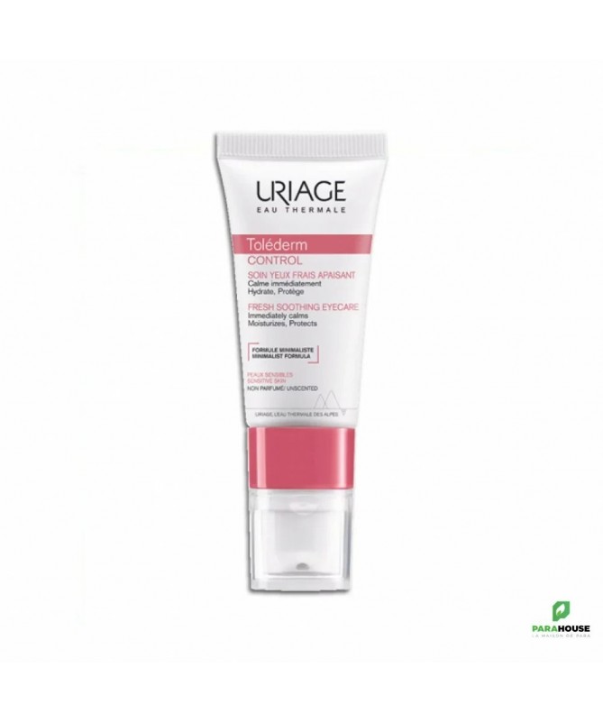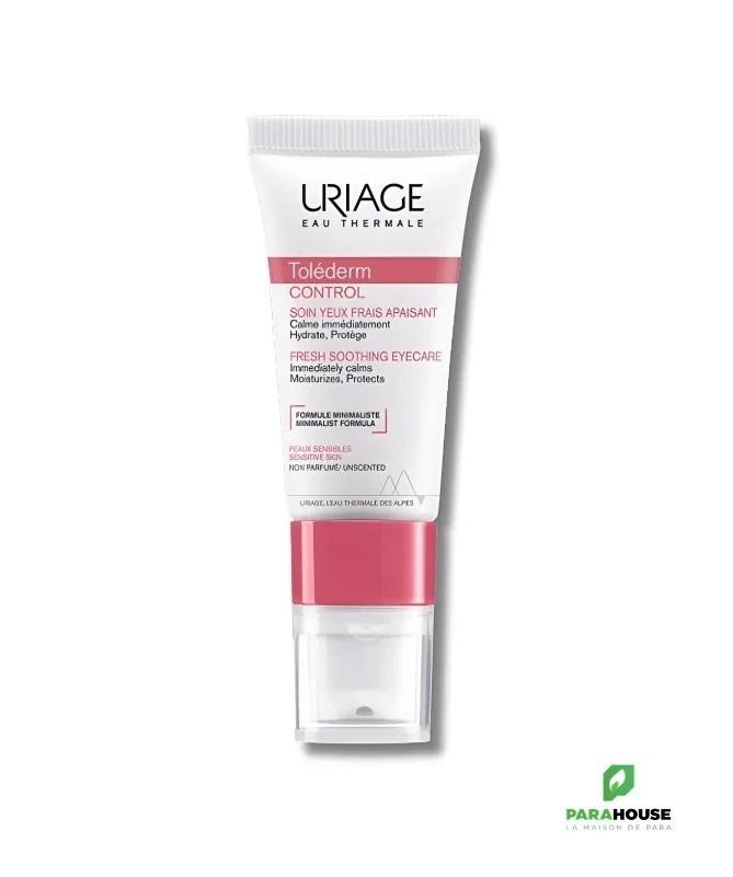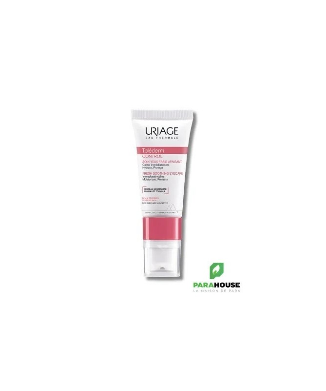 URIAGE TOLEDERM CONTROL SOIN YEUX FRAIS APAISANT 15ML URIAGE TOLEDERM CONTROL SOIN YEUX FRAIS APAISANT est un soin léger qui apaise et protège en profondeur pour un confort durable aux contours des yeux sensibles des peaux intolérantes, hyper-réactives et allergiques. La formule aux actifs d’origine naturelle renforce la barrière de la peau et augmente son seuil de tolérance pour aider à contrôler les sensations d’irritation, de picotements, d’échauffements et/ou de tiraillements : TOLEDERM CONTROL SOIN YEUX : CONTRÔLE LA RÉACTIVITÉ DE LA PEAU : Le trio d’actifs d’origine naturelle limite en surface la pénétration de stimuli aggravants la sensibilité cutanée. L’Eau Thermale d’Uriage contrôle 3 neuro-récepteurs impliqués dans les mécanismes de sensibilité cutanée pour augmenter le seuil de tolérance.* CALME IMMÉDIATEMENT LES SENSATIONS D’INCONFORT : Les Polyuronides d’Algues anti-irritants associés à l’Eau thermale d’Uriage naturellement apaisante, calment immédiatement et durablement les sensations d’inconfort. ACTION POCHES ET CERNES : Sa formule fraîche enrichie en nacres correctrices estompe les cernes et diminue les poches sous les yeux. Résultats : -56%DE RÉACTIVITÉ CUTANÉE Composition : AQUA (WATER, EAU) - HELIANTHUS ANNUUS (SUNFLOWER) SEED OIL - GLYCERIN - SQUALANE - POLYGLYCERYL-6 DISTEARATE - MICROCRYSTALLINE CELLULOSE - DICAPRYLYL ETHER -1,2 - HEXANEDIOL - JOJOBA ESTERS - ACRYLATES/C10-30 ALKYL ACRYLATE CROSSPOLYMER - HYDROXYACETOPHE NONE - POTASSIUM CETYL PHOSPHATE - SODIUM HYDROXIDE - CETYL ALCOHOL - POLYGLYCERYL-3 BEESWAX - XANTHAN GUM - TOCOPHERYL ACETATE - HYDROLYZED ALGIN - TOCOPHEROL. Formule minimaliste : 3 ingrédients actifs d’origine naturelle : Eau Thermale d’Uriage Polyuronides d’Algues Squalane Végétal Formule composée à 97% d’ingrédients d’origine naturelle. Pas de conservateur, alcool, phenoxyethanol, émulsionnants ethoxylés, silicones volatiles, dérivées de pétrole Non parfumé – pH physiologique Testé dermatologiquement sur peaux sensibles, intolérantes et allergiques. Texture légère et fraîche Tube Pompe airless – moderne et facile à utiliser Conseils d'utilisation : Il est recommandé d'appliquer URIAGE TOLEDERM CONTROL SOIN YEUX FRAIS APAISANT délicatement matin et/ou soir sur le visage sur le contour de l’œil.