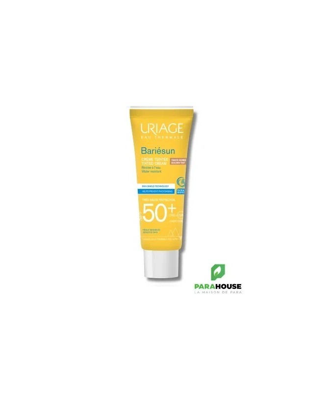 Avec la Crème Teintée dorée SPF50+ Bariésun d'URIAGE, réconciliez le hâle et la protection, dans le plus grand confort pour les peaux sensibles. Hypoallergénique et non comédogène, ce protecteur solaire constitue une très haute protection contre les UVA, les UVB et les radicaux libres. Formulé à base d'aquaspongines et d'eau thermale d'Uriage, il réhydrate les peaux desséchées par une longue exposition solaire. Sa texture fluide et légère laisse un fini non-gras et agréablement parfumé.