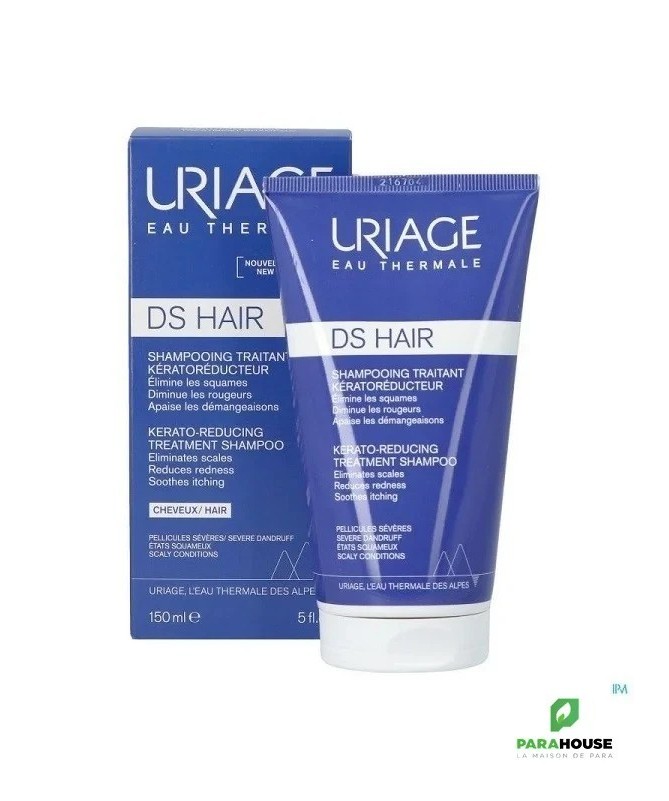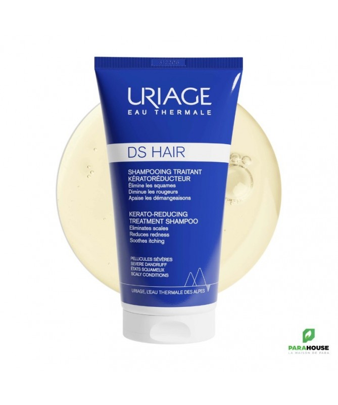 URIAGE DS HAIR - SHAMPOOING TRAITANT KÉRATORÉDUCTEUR 150ML URIAGE DS HAIR SHAMPOOING KERATOREDUCTEUR permet d'éliminer les pellicules, sèches ou grasses et exfolie les squames. Le cuir chevelu est purifié et les démangeaisons apaisées. Sa texture ultra-sensorielle apporte souplesse, beauté et brillance aux cheveux. Uriage keratoreducteur agit en: Action apaisante: La technologie brevetée TLR2-Regul, combinée à l’Eau Thermale d’Uriage et à l’Edelweiss agissent spécifiquement pour apaiser et protéger le cuir chevelu. Action kératorégulatrice: Efficacité renforcée avec l'acide salicylique pour exfolier les squames. Action purifiante: L'association de la piroctone olamine avec le lactate de zinc permet de combattre et prévenir l’excès de Malassezia qui aggravent les pellicules. Composition : AQUA (WATER, EAU) — SODIUM LAURETH SULFATE — SODIUM COCOYL GLUTAMATE — COCAMIDOPROPYL BETAINE — DECYL GLUCOSIDE — LACTIC ACID — PARFUM (FRAGRANCE) — BUTYLENE GLYCOL — GLYCINE — PROPYLENE GLYCOL — PIROCTONE OLAMINE — COCO-GLUCOSIDE — GLYCERYL OLEATE — ZINC LACTATE — LAURETH-2 — PEG/PPG-120/10 TRIMETHYLOLPROPANE TRIOLEATE — SODIUM HYDROXIDE — CITRIC ACID — GLYCERIN — HIBISCUS SABDARIFFA FLOWER EXTRACT — PHYTOSPHINGOSINE — LEONTOPODIUM ALPINUM FLOWER/LEAF EXTRACT — SODIUM BENZOATE — ASIATICOSIDE — POTASSIUM SORBATE — TOCOPHEROL — HYDROGENATED VEGETABLE GLYCERIDES CITRATE Conseils d'utilisation : Il est recommandé d'Appliquer DS HAIR KERATOREDUCTEUR 1 à 2 fois par semaine sur cheveux mouillés, le front et la nuque. Faire mousser en massant avec douceur, laisser poser 2-3 minutes puis rincer abondamment. En alternance, utiliser DS HAIR SHAMPOOING DOUX ÉQUILIBRANT. Pour une efficacité optimale utiliser en complément DS HAIR LOTION ANTIPELLICULAIRE RÉGULATRICE. Eviter le contact avec les yeux. Ne pas utiliser chez l’enfant de moins de 3 ans et chez la femme enceinte ou allaitante.