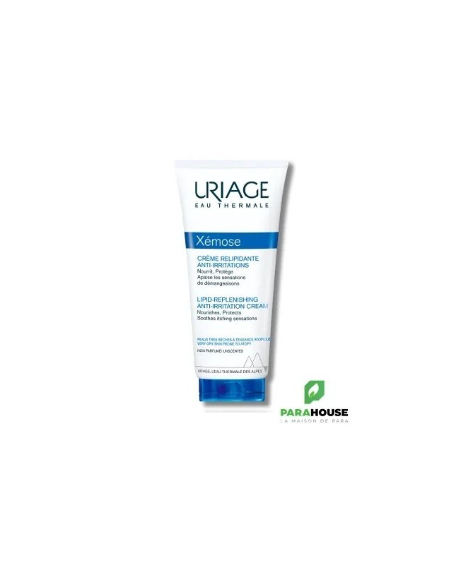 Uriage Xémose Crème Relipidante Anti Irritations 200ML URIAGE XEMOSE Creme Relipidante Anti Irritations est un Soin pour peaux très sèches et à tendance atopique. Cette crème nourrit intensément la peau du corps et du visage et apaise immédiatement les sensations de démangeaisons génératrices de grattage. URIAGE Xemose creme apaise immédiatement les sensations de démangeaisons génératrices de grattage et offre un confort durable. Dotée d’une texture fondante non collante, elle permet un habillage rapide. Elle pénètre instantanément pour espacer les pics de sécheresse sévère et apporter un confort durable. Apaise immédiatement : Ce soin présente une action apaisante immédiate, grâce au brevet* Chronoxine. Apporte un confort durable : Il possède une action triple barrière pour un apaisement durable : le Cérastérol 2F restaure et renforce la barrière cutanée, le complexe TLR2 Regul module la barrière de défense innée et l’Eau Thermale d’Uriage rééquilibre la barrière microbienne. Composition : AQUA (WATER, EAU) — PARAFFINUM LIQUIDUM (MINERAL OIL) — BUTYROSPERMUM PARKII BUTTER — DICAPRYLYL ETHER — GLYCERIN — POLYSORBATE 60 — BUTYLENE GLYCOL — CETYL ALCOHOL — SQUALANE — SODIUM POLYACRYLATE — GLYCERYL STEARATE — PEG-100 STEARATE — BRASSICA CAMPESTRIS STEROLS — DIMETHICONE — CHLORPHENESIN — TOCOPHERYLACETATE — CETRIMONIUM BROMIDE — o-CYMEN-5-OL — PIROCTONE OLAMINE — XANTHAN GUM — RASPBERRY SEED OIL/PALM OIL AMINOPROPANEDIOL ESTERS — ASIATICOSIDE — PHYTOSPHINGOSINE — BORAGE SEED OIL AMINOPROPANEDIOL AMIDES Conseils d'utilisation : Il est conseillé d'appliquer Uriage xemose creme relipidante tous les jours sur une peau propre.