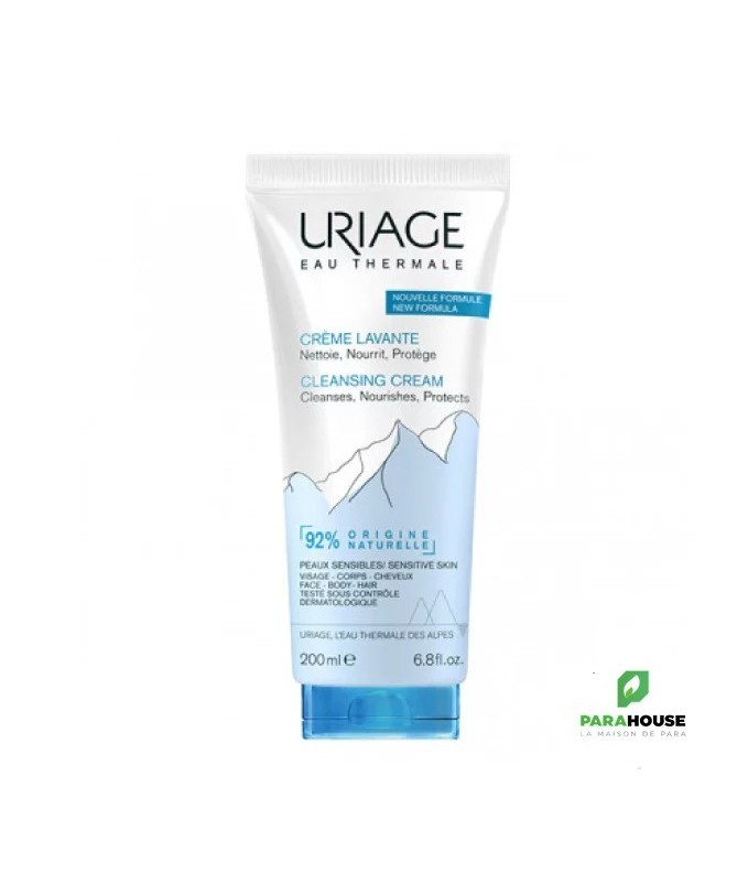 Description :URIAGEEau thermaleCrème lavanteNettoie, nourrit et protègePeaux sensiblesVisage, corps et cheveux200mlTrès agréablement parfumé, ce soin 2 en 1 nettoyant et nourrissant laisse la peau parfaitement propre, douce et hydratée.Nettoie :Sa base lavante sans savon à pH physiologique élimine toutes les impuretés en douceur.Nourrit :Avec 1/3 de lait nourrissant, elle préserve le film hydrolipidique de la peau.Protège :Grace à ses agents doux surgraissants et l’Eau Thermale d’Uriage, elle protège la peau des effets desséchants de l’eau calcaire.Conseils d'utilisation :Bien faire mousser sur une peau mouillée et rincer.Usage quotidien.Composition :Formule INCI : Aqua, uriage thermal water, magnesium laureth sulfate, decyl glucoside, glycerin, cocamidopropyl betaine, styrene/ acrylates copolymer,parfum, phenoxyethanol, PEG-75 shorea butter glycerides, sodium chloride, PEG-120 methyl glucose dioleate, dmdm hydantoin, citric acid.Sans savon.Hypoallergénique.