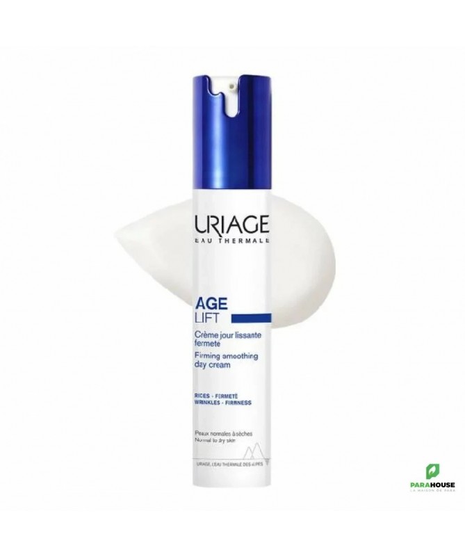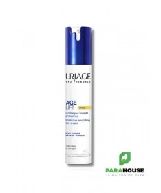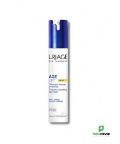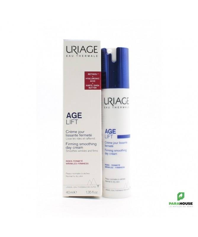 URIAGE AGE LIFT CREME JOUR LISSANTE FERMETE 40ML - Rides, fermeté, déshydratation URIAGE AGE LIFT CREME JOUR LISSANTE FERMETE est un soin liftant qui lisse et raffermit toutes les peaux, même sensibles [3X moins de rides, 3X plus de fermeté]. Cette crème lissante fermeté onctueuse, URIAGE AGE LIFT, agit simultanément sur les rides, la fermeté et sur les agressions quotidiennes que subit la peau : lumière bleue, UV, pollution, stress, fatigue. La peau est plus lisse, plus ferme, les traits sont comme défroissés. Les contours du visage sont mieux définis. La peau est durablement hydratée et retrouve sa vitalité. URIAGE AGE LIFT CREME JOUR se base sur des actifs anti-âge reconnus : RÉTINOL + ACIDE HYALURONIQUE + BEURRE DE KARITÉ pour assurer : CORRECTION RIDES + FERMET֤É : Sa formule enrichie en actifs anti-âge [rétinol + acide hyaluronique] diminue l'apparence des ridules et des rides, lutte contre la perte de tonicité et le manque de fermeté. PROTECTION ANTI-ÂGE : La peau est protégée des méfaits de la pollution et des effets néfastes de la lumière bleue grâce à la technologie Barrière Lumière Bleue. CONFORT & HYDRATATION : Formule enrichie en Beurre de Karité pour une peau souple et durablement hydratée. Résultats Rides : -69% Fermeté : +87% Hydratation (6 Heures) : +57% Composition : AQUA (WATER, EAU) — DIMETHICONE — CETEARYL ETHYLHEXANOATE — DIGLYCERIN — BUTYROSPERMUM PARKII (SHEA) BUTTER — HYDROGENATED POLYDECENE — ISONONYL ISONONANOATE — LIMNANTHES ALBA SEED OIL (LIMNANTHES ALBA (MEADOWFOAM) SEED OIL) — SQUALANE — DICAPRYLYL CARBONATE — GLYCERIN — BUTYLENE GLYCOL — JOJOBA ESTERS — 1,2-HEXANEDIOL — BORON NITRIDE — STEARETH-2 — STEARETH-21 — ASCORBYL TETRAISOPALMITATE — TOCOPHERYLACETATE — RETINYL PALMITATE — SODIUM HYALURONATE — CROTON LECHLERI RESIN EXTRACT — TOCOPHEROL — HYDROXYETHYL ACRYLATE/SODIUM ACRYLOYLDIMETHYL TAURATE COPOLYMER — CETYL ALCOHOL — POLYGLYCERIN-3 — PARFUM (FRAGRANCE) — POLYACRYLATE CROSSPOLYMER-6 — CI 77891 (TITANIUM DIOXIDE) — CHLORPHENESIN — CAESALPINIA SPINOSA FRUIT EXTRACT — MICA — o-CYMEN-5-OL — ACACIA DECURRENS FLOWER CERA (ACACIA DECURRENS FLOWER WAX) — HELIANTHUS ANNUUS SEED CERA (HELIANTHUS ANNUUS (SUNFLOWER) SEED WAX) — POLYSORBATE 60 — SORBITAN ISOSTEARATE — KAPPAPHYCUS ALVAREZII EXTRACT — ADENOSINE — THEOBROMA CACAO SEED EXTRACT (THEOBROMA CACAO (COCOA) SEED EXTRACT) — TIN OXIDE — t-BUTYL ALCOHOL — CITRIC ACID Conseils d'utilisation : Appliquer la crème anti-âge URIAGE AGE LIFT CREME JOUR en soin quotidien, le matin, sur l’ensemble du visage. Eviter le contact avec les yeux. Peaux normales à sèches, mêmes sensibles. En cas de picotements, espacer les applications. Testé sous contrôle dermatologique.