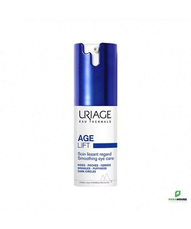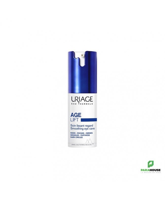 URIAGE AGE LIFT SOIN LISSANT REGARD 15ML - Rides, poches, cernes URIAGE AGE LIFT SOIN LISSANT REGARD lisse et raffermit toutes les peaux, même sensibles [3X moins de rides, 3X plus de fermeté] . Ce soin lissant regard fondant agit simultanément sur les rides, la fermeté du contour de l’œil et sur les agressions quotidiennes que subit la peau : lumière bleue, UV, pollution, stress, fatigue. La peau du contour de l'œil est lissée et hydratée. L'apparence des rides, poches, cernes est atténuée et le regard est plus reposé. Actifs anti-âge reconnus : [RÉTINOL** + ACIDE HYALURONIQUE] Tous types de peaux, même sensibles. CORRECTION RIDES + FERMETÉ :Sa formule enrichie en actifs anti-âge [rétino + acide hyaluronique] diminue l'apparence des ridules et des rides, lutte contre la perte de tonicité et le manque de fermeté. Les paupières sont réhaussées pour un effet liftant, et le contour de l’œil est lissé. ANTI-CERNES & ANTI-POCHES: Les cernes et les poches sont visiblement atténués grâce aux actifs décongestionnants et flouteurs : Sulfate de Dextran et Nacres. HAUTE TOLERANCE : L’Eau Thermale d’Uriage adoucit et apaise toutes les peaux, même sensibles. + 59% CONFORT ÉCLAT : +82% EFFET LISSANT : 95 % Composition : AQUA (WATER, EAU) — DIMETHICONE — BUTYLENE GLYCOL — DIGLYCERIN — SILICA — BUTYROSPERMUM PARKII (SHEA) BUTTER — CETYL ALCOHOL — SQUALANE — JOJOBA ESTERS — 1,2-HEXANEDIOL — BORON NITRIDE — GLYCERYL STEARATE — PEG-100 STEARATE — GLYCERYL BEHENATE — HELIANTHUS ANNUUS SEED CERA (HELIANTHUS ANNUUS (SUNFLOWER) SEED WAX) — DIMETHICONOL — POLYACRYLATE CROSSPOLYMER-6 — SODIUM ACRYLATE/SODIUM ACRYLOYLDIMETHYL TAURATE COPOLYMER — SODIUM DEXTRAN SULFATE — CAESALPINIA SPINOSA FRUIT EXTRACT — ISOHEXADECANE — BENZOIC ACID — MICA — GLYCERIN — ASCORBYL TETRAISOPALMITATE — POLYSORBATE 80 — TOCOPHERYL ACETATE — KAPPAPHYCUS ALVAREZII EXTRACT — O-CYMEN-5-OL — CI 77891 (TITANIUM DIOXIDE) — ACACIA DECURRENS FLOWER CERA (ACACIA DECURRENS FLOWER WAX) — POLYGLYCERIN-3 — RETINYL PALMITATE — ADENOSINE — SODIUM HYALURONATE — SODIUM HYDROXIDE — SORBITAN OLEATE — T-BUTYL ALCOHOL — THEOBROMA CACAO SEED EXTRACT (THEOBROMA CACAO (COCOA) SEED EXTRACT) — SPIRULINA PLATENSIS EXTRACT — TOCOPHEROL Conseils d'utilisation : Appliquer le contour des yeux anti-âge le matin et/ou soir, par légers massages. Pour toutes peaux, même sensibles. Testé ophtalmologiquement.