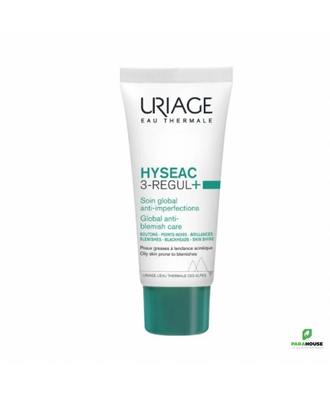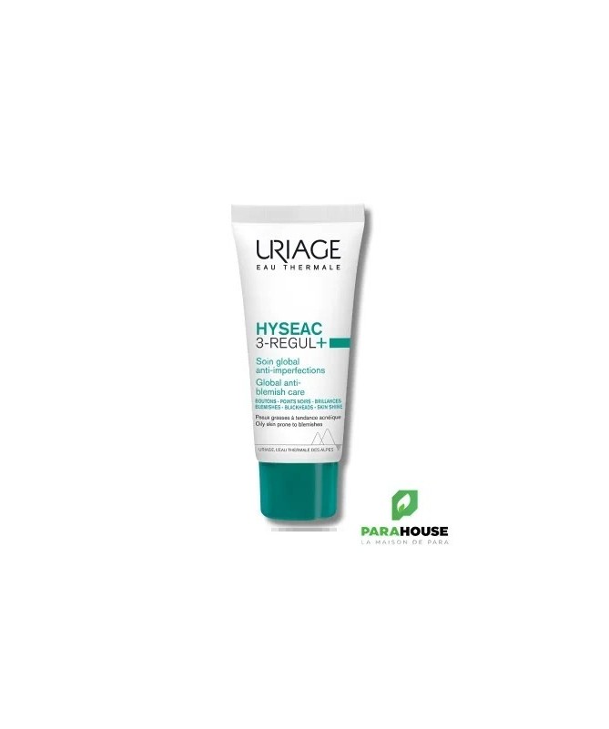 URIAGE HYSEAC 3 REGUL+ SOIN GLOBAL 40ML URIAGE HYSÉAC 3-REGUL + SOIN GLOBAL est un soin global « tout en un » favorise l’élimination des défauts cutanés (boutons, points noirs, brillances) et laisse la peau nette et matifiée. HYSEAC 3 REGUL : Limite les imperfections: Il limite les boutons et les points noirs grâce à un complexe d’actifs performants et à l’Eau Thermale d’Uriage. Affine le grain de peau: Il lisse significativement le grain de peau et resserre les pores. Matifie: Il limite l’excès de sébum, source de nouvelles imperfections grâce à l’extrait de Licorice. Résultats BOUTONS - EFFICACITE DES 4H -48% POINTS NOIRS : -29% MOINS DE BRILLANCES : 81% Conseils d'utilisation : IL est recommandé de l' Appliquer URIAGE HYSEAC 3 REGUL matin et/ou soir sur une peau parfaitement nettoyée et séchée. Eviter le contact avec les yeux. Testé sur peaux à tendance acnéique. Usage quotidien Composition : Formule INCI : AAQUA (WATER, EAU) - DI-C12-13 ALKYL MALATE - POLYMETHYL METHACRYLATE - DICAPRYLYL ETHER - TAPIOCA STARCH - GLYCOLIC ACID - SODIUM HYDROXIDE - DIGLYCERIN - GLYCERIN - MALIC ACID - STEARETH-2 - STEARETH-21 - LACTIC ACID - PENTAERYTHRITYL DISTEARATE - BUTYLENE GLYCOL - ACRYLATES/C10-30 ALKYL ACRYLATE CROSSPOLYMER - JOJOBA ESTERS - DIMETHICONE - GLYCERYL STEARATE - PARFUM (FRAGRANCE) - PEG-100 STEARATE - PROPANEDIOL - TOCOPHERYL ACETATE - HELIANTHUS ANNUUS SEED CERA (HELIANTHUS ANNUUS (SUNFLOWER) SEED WAX) - PIROCTONE OLAMINE - XANTHAN GUM - PENTYLENE GLYCOL - PHYTOSPHINGOSINE - LENS ESCULENTA (LENTIL) SEED EXTRACT - POLYMETHYLSILSESQUIOXANE - SALICYLIC ACID - ZINC LACTATE - ASIATICOSIDE - ACACIA DECURRENS FLOWER CERA (ACACIA DECURRENS FLOWER WAX) - POLYGLYCERIN-3 - GLYCYRRHIZA INFLATA ROOT EXTRACT - SODIUM BENZOATE - RHAMNOSE - GLUCOSE - GLUCURONIC ACID - TOCOPHEROL
