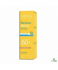 URIAGE BARIÉSUN CRÈME TEINTÉE DORÉE SPF50+ 50ML - SOIN SOLAIRE BOUCLIER - ULTRA-PROTECTION Grâce à un complexe filtrant très performant, URIAGE BARIESUN CREME TEINTEE DOREE SPF 50 apporte une très haute protection contre les UVA, les UVB, les radicaux libres et prévient du dessèchement cutané. Sa texture légère, non grasse et agréablement parfumée garantit un plaisir d’utilisation renouvelé à chaque application. URIAGE CREME TEINTEE SPF 50 subtilement nacrée sublime le teint d’un éclat doré tout en garantissant une haute sécurité, une grande tolérance et une pénétration rapide. Prévient contre le photo-vieillissement: L’Eau Thermale d’Uriage, au cœur des formules Bariésun permet de lutter contre les méfaits du soleil. La barrière cutanée est alors renforcée et l’ADN est protégé de sa dégradation par les UV*. Protège contre les UV: Son nouveau complexe de filtres de dernière génération assure une très haute protection contre les UV. Ce soin garantit une photostabilité prouvée et une large couverture UVB-UVA. Hydrate intensément: Enrichi en Aquaspongines et en Eau Thermale d'Uriage, la crème assure une protection intense contre le dessèchement Embellit le teint : Ses pigments teintés unifient naturellement le teint, tout en apportant une couvrance optimale. La crème assure une protection intense contre le dessèchement et possède une action antioxydante Composition : AQUA (WATER, EAU) — DICAPRYLYL CARBONATE — METHYLENE BIS-BENZOTRIAZOLYL TETRAMETHYLBUTYLPHENOL[NANO] — CI 77891 (TITANIUM DIOXIDE) — ETHYLHEXYL TRIAZONE — BUTYL METHOXYDIBENZOYLMETHANE — DIISOPROPYL SEBACATE — PROPYLENE GLYCOL DICAPRYLATE/DICAPRATE — HYDROGENATED PALM KERNEL GLYCERIDES — C12-15 ALKYL BENZOATE — DIISOPROPYL ADIPATE — BIS-ETHYLHEXYLOXYPHENOL METHOXYPHENYL TRIAZINE — SILICA — TRIACONTANYL PVP — CI 77492 (IRON OXIDES) — GLYCERIN — C20-22 ALKYL PHOSPHATE — C20-22 ALCOHOLS — DECYL GLUCOSIDE — BUTYLENE GLYCOL — HYDROGENATED PALM GLYCERIDES — GLUCOSE — CI 77491 (IRON OXIDES) — XANTHAN GUM — PARFUM (FRAGRANCE) — COCO-GLUCOSIDE — BENZOIC ACID — TETRASODIUM EDTA — COCONUT ALCOHOL — TRIETHOXYCAPRYLYLSILANE — HYDROGENATED POLYDECENE — TOCOPHERYLACETATE — o-CYMEN-5-OL — CI 77499 (IRON OXIDES) — TREHALOSE — PROPYLENE GLYCOL — CITRIC ACID — SODIUM HYDROXIDE — ASCORBYL TETRAISOPALMITATE — TOCOPHEROL — SPIRULINA PLATENSIS EXTRACT — POLYQUATERNIUM-51 Conseils d'utilisation : Avant l’exposition, appliquer une dose généreuse et homogène de URIAGE CREME TEINTEE pour bien couvrir la zone exposée au soleil. Renouveler l’application fréquemment, surtout après avoir transpiré, nagé ou s’être essuyé. Même bien protégé, réduire au maximum l’exposition. Ne pas exposer les bébés et les jeunes enfants directement au soleil.