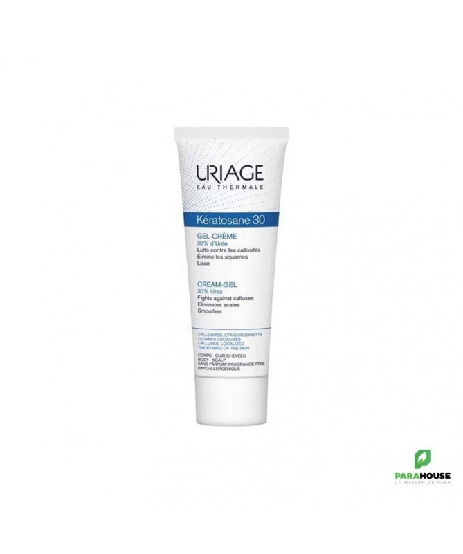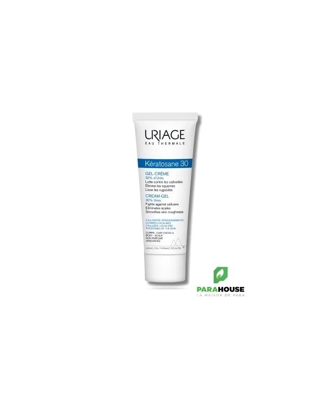 URIAGE KERATOSANE 30 GEL CREME 75ML URIAGE KERATOSANE 30 GEL CREME est un soin complet qui permet à la peau de retrouver son aspect lisse, apaisé, doux sans rugosité. KERATOSANE 30 Exfolie la peau avec sa concentration en Urée lui permet d’avoir une puissante action kératolytique sur les zones rugeuses ou très épaisses identifiées. Composition : AQUA/EAU URIAGE — UREA — GLYCERIN — GLYCINE — PARAFFINUM LIQUIDUM (MINERAL OIL) — SQUALANE — SORBITAN STEARATE — ALGIN — POLYSORBATE 60 — PHENOXYETHANOL — ACRYLATES/C10-30 ALKYL ACRYLATE CROSSPOLYMER — CHOLESTEROL — SODIUM DEXTRAN SULFATE — SODIUM HYDROXIDE Conseils d'utilisation : Appliquer URIAGE KERATOSANE 30 deux fois par jour ou plus selon les besoins sur les zones concernées. Précaution d’emploi : des sensations passagères de picotements sont possibles sur les peaux les plus sensibles. Eviter le contact avec les yeux.