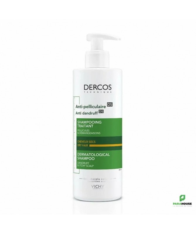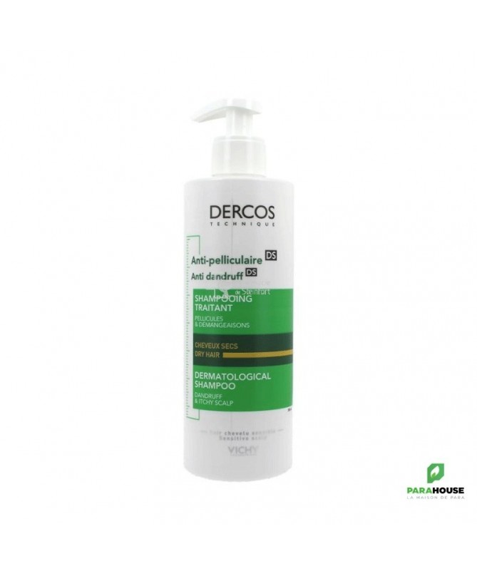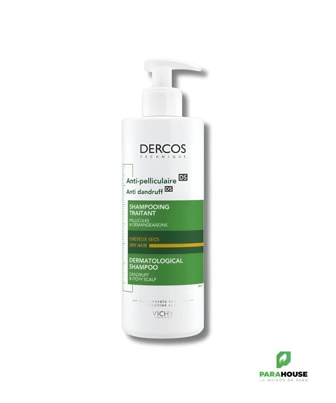 VICHY DERCOS ANTI PELLICULAIRE Shampooing traitant Cheveux secs 200ML VICHY DERCOS ANTI PELLICULAIRE Shampooing traitant Cheveux secs : Pellicules, rougeurs et démangeaisons. Cheveux secs. Anti-pelliculaire. Dépourvues de céramides, les cellules du cuir chevelu se désolidarisent en surface formant des pellicules à la base des cheveux. VICHY DERCOS ANTI PELLICULAIRE Shampooing régule le microbiome* et élimine 100% des pellicules visibles Première formule brevetée au sélénium DS (Disulfure de sélénium). Association unique de disulfure de sélénium puissant actif antipelliculaire, et de Cohesyl tm, véritable ciment d'ancrage cellulaire. Efficacité clinique prouvée. Elimination de pellicules visibles dès la 1ère application. Un cuir chevelu reconstitué et sans pellicules jusqu'à 4 semaines après arrêt du traitement. Les cheveux sont sains, fortifiés, et vigoureux. Composition : Formule INCI : Aqua (water), glycerin, dimethicone, sodium laureth sulfate, coco-betaine, carbomer, ci 19140, sodium hypochlorite, cetyl alcohol, hydroxystearyl cetyl ether, ppg-5 ceteth-20, propylene glycol, salycylic acid, yellow 5, citric acid, 2-oleamido, octadecanediol, sodium hydroxide, selenium sulfide, sodium chloride, parfum (fragrance). NB : Sans paraben. Testé sous contrôle dermatologique. Conseils d'utilisation : A la 1ère application de VICHY DERCOS ANTI PELLICULAIRE Shampooing traitant Cheveux secs, laisser poser 2mn, puis rincer. Aux shampooings suivants, masser puis rincer. Cure de 4 semaines.