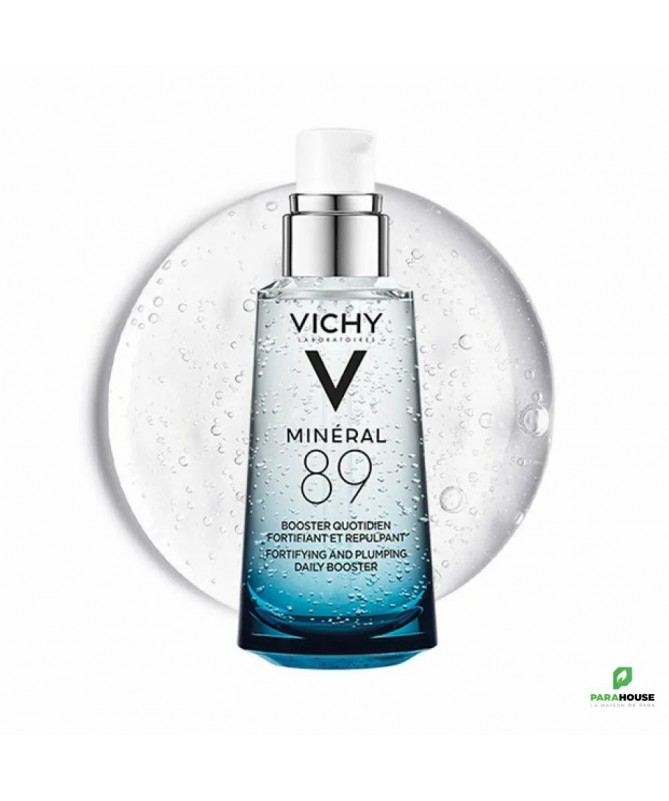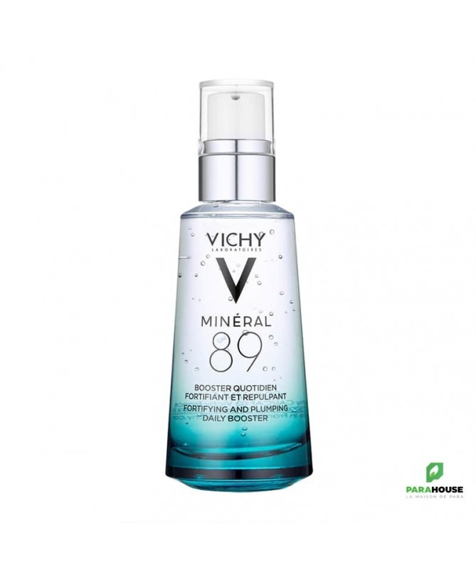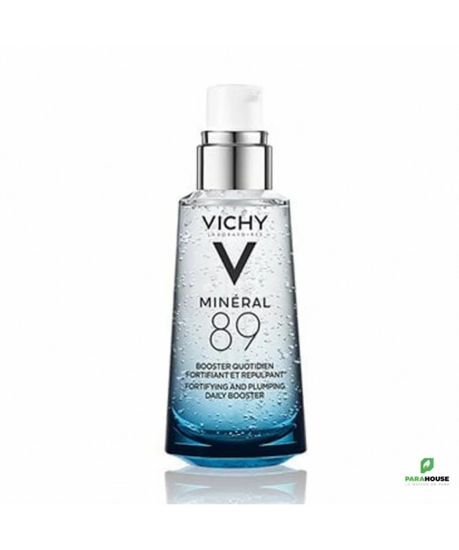 VICHY MINERAL 89 BOOSTER QUOTIDIEN FORTIFIANT REPULPANT VICHY MINERAL 89 BOOSTER fournit à la peau le parfait coup de pouce quotidien d'hydratation et fortifie la peau pour la protéger contre les agressions extérieures. Grâce à l'acide hyaluronique et à l'eau minéralisante de Vichy enrichie, ce sérum pour le visage à hydratation quotidienne repulpe et renforce l'éclat de la peau. Cette formule gel aqueux légère est rapidement absorbée et donne de puissants résultats. La peau est plus résistante, elle est plus éclatante ! En 4 semaines : la peau est ressourcée, plus résistante au egressions exterieures BENEFICES DE VICHY MINERAL 89 : Dès la première application : +10,1 % peau plus forte et mieux hydratée +11,4 % de tonicité et de peau repulpée hydratation pendant 24 heures Après 4 semaines , la peau est : +81 % plus douce +77 % plus lisse +75 % plus souple +75 % plus éclatante Composition : Aqua (Water), Peg/PPG/Polybutylene Glycol-8/5/3 Glycerin, Glycerin, Butylene Glycol, Methyl Gluceth-20, Carbomer, Sodium Hyaluronate, Phenoxyethanol, Caprylyl Glycol, Citric Acid, Biosaccharide Gum-1. Le sérum hydratant et fortifiant MINERAL 89 contient des ingrédients reconnus pour leurs effets hydratants, repulpants et fortifiants. Acide hyaluronique (Sodium Hyaluronate) Eau volcanique de Vichy Glycérine (Glycerin) Formule hypoallergénique, testée sur peaux sensibles. Conseils d'utilisation : Il est conseille le matin sur peau propre et sèche, d'appliquez 1 à 2 pressions du sérum MINERAL 89 sur l’ensemble du visage et le cou.