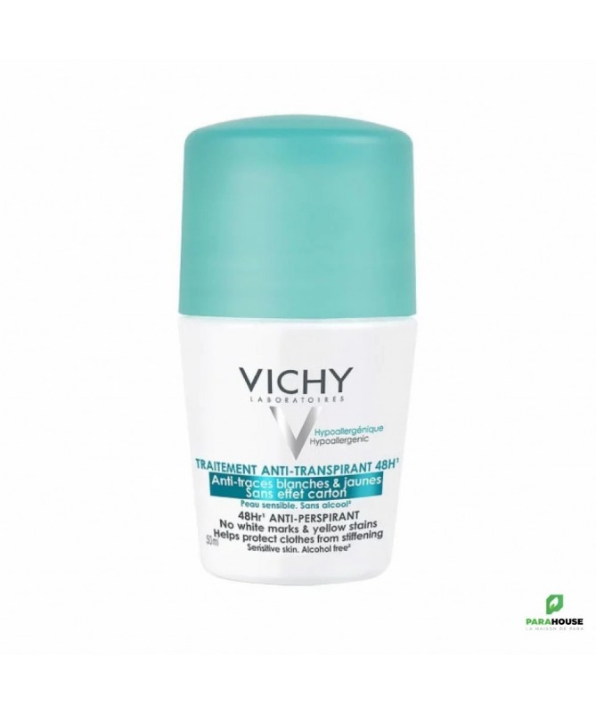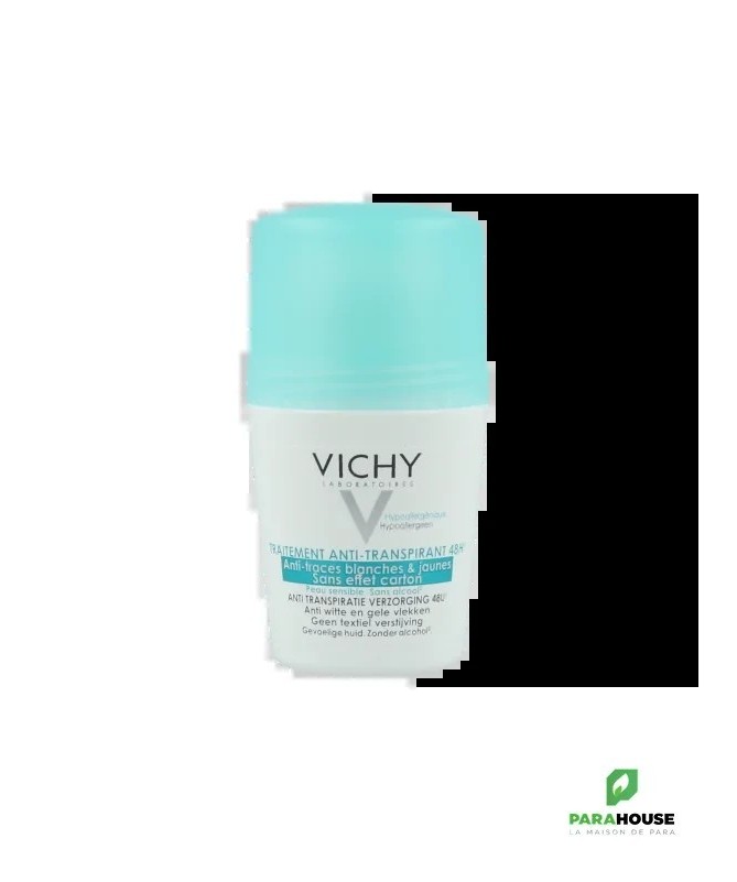 VICHY DEO BILLE ANTI TRANSPIRANT ANTI TRACE 50ML VICHY DEO BILLE ANTI TRANSPIRANT ANTI TRACE : C'est un déodorant anti-transpirant 48H , anti-traces blanches et jaunes. Il est destiné pour les peaux sensibles en cas de transpiration intense. Il est hypoallergénique :sans effet carton,sans alcool et sans paraben. Composition : Formule INCI: Isobutane, Aqua/water, Dimethicone, Aluminum Chlorohydrate, Phenoxyethanol, Lauryl PEG-9, Polydimethylsiloxyethyl Dimethicone, Tetrasodium Glutamate Diacetate, Dimethiconol, Parfum/fragrance. Conseils d'utilisation : Il est indiqué de l'appliquer VICHY DEO BILLE ANTI TRANSPIRANT ANTI TRACE chaque matin et/ou le soir sous les aisselles.