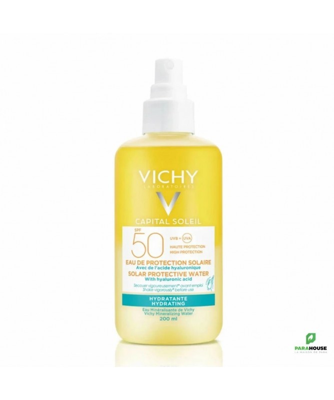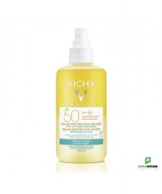 VICHY CAPITAL SOLEIL Eau de Protection Solaire Hydratante SPF 50 - 200ML Grâce à l'association unique d'un filtre UVA/UVB à large spectre et d'une formule sensorielle, VICHY CAPITAL SOLEIL Eau de Protection Solaire Hydratante SPF 50 est une combinaison unique d'un filtre UV à large spectre et d'une formule sensorielle. VICHY CAPITAL SOLEIL Eau Solaire est sous forme de spray à texture aquese ultra fraîche et non collante qui protège efficacement la peau grâce à son indice SPF 50. La formule est enrichie en acide hyaluronique, un puissant ingrédient hydratant, associé à l'eau volcanique de VIchy qui enforce les défenses naturelles de la peau. Resultats : 92% des personnes interrogées trouvent le produit agréable à appliquer 87% des personnes interrogées trouvent que le produit hydrate durablement la peau 88% des personnes interrogées trouvent leur peau plus douce après application Composition : AQUA / WATER, HOMOSALATE, DICAPRYLYL ETHER, DIISOPROPYL SEBACATE, OCTOCRYLENE, ETHYLHEXYL TRIAZONE, DICAPRYLYL CARBONATE, ETHYLHEXYL SALICYLATE, ALCOHOL DENAT, BUTYL METHOXYDIBENZOYLMETHANE, GLYCERIN, PHENYLBENZIMIDAZOLE SULFONIC ACID, PROPANEDIOL, TRIETHANOLAMINE, BIS-ETHYLHEXYLOXYPHENOL METHOXYPHENYL TRIAZINE, CAPRYLYL GLYCOL, HYDROLYZED HYALURONIC ACID, PHENOXYETHANOL, POLY C10-30 ALKYL ACRYLATE, TEREPHTHALYLIDENE DICAMPHOR SULFONIC ACID, TOCOPHEROL, TRISODIUM ETHYLENEDIAMINE DISUCCINATE, PARFUM / FRAGRANCE TESTÉ SOUS CONTRÔLE DERMATOLOGIQUE HYPOALLERGÉNIQUE TESTÉ SUR PEAUX SENSIBLES HYDRATANT GRÂCE À L'ACIDE HYALURONIQUE RÉSISTANT À L'EAU ET À LA TRANSPIRATION PARFUM AGRÉABLE Conseils d'utilisation : Il est indiqué d'appliquer VICHY CAPITAL SOLEIL Eau de Protection Solaire au mois tout les deux heures Tous types de peaux
