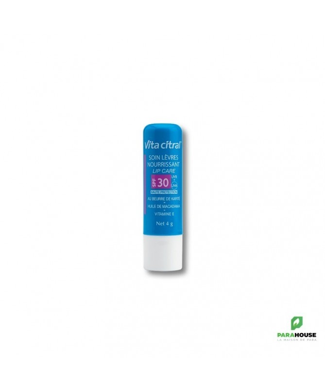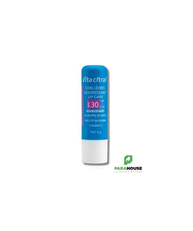 Découvrez le VITA CITRAL STICK LEVRES NOURRISSANT SPF30, votre allié indispensable pour des lèvres douces et protégées. Ce stick lèvres combine une formule nourrissante et hydratante, idéale pour combattre le dessèchement et les agressions extérieures. Grâce à sa protection SPF30, il préserve vos lèvres des effets néfastes du soleil tout en les maintenant en pleine santé.Sa texture onctueuse glisse facilement sur les lèvres, offrant un confort immédiat et une sensation de bien-être tout au long de la journée. Que ce soit en été, lors de vos activités en extérieur, ou durant les saisons plus froides, ce baume nourrissant est conçu pour s'adapter à toutes les situations. Emportez-le partout avec vous, et n'oubliez pas de l'appliquer régulièrement pour un soin optimal.Avec le VITA CITRAL STICK LEVRES NOURRISSANT SPF30, alliez protection et soin, pour des lèvres sublimées et protégées en toutes circonstances.Composition : Huile de ricin, cire d'abeille, beurre de karité, agents hydratants, filtres solaires.Composition :Beurre de Karité, Huile de Macadamia, Huile de Ricin, Vitamine E, Filtres solaires SPF30, protection UVA+UVB