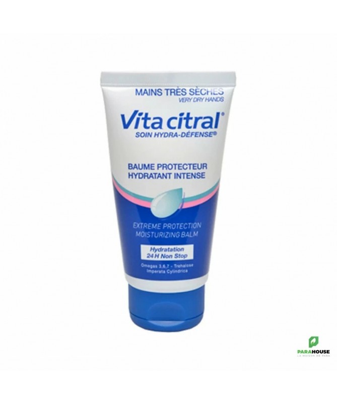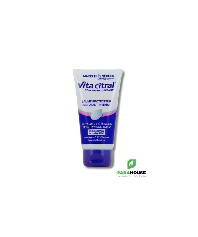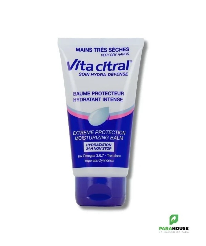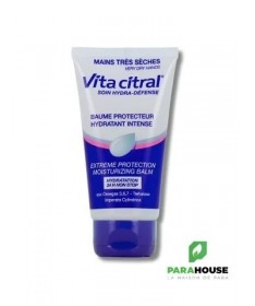 VITA CITRAL Baume Protecteur Hydratant Intense 75ML VITA CITRAL Baume Protecteur pour la protection des mains contre la déshydratation importante et les agressions (froid, air sec, eau, travaux divers…). Hydrate et adoucit la peau. Régénère et protège la barrière d’hydratation de la peau. Enveloppe les mains d’un voile protecteur pour un confort immédiat. Effet prolongé (24h). Non gras, non collant. VITA CITRAL Baume Protecteur Hydratant Intense possède une formule haute tolérance, sans paraben. Composition : Emulsion H/E (Huile dans Eau) : - Beurre de Karité (Butyrospermum parkii) - Glycérine végétale - Tréhalose - Huile de pépins de Raisin (Vigne rouge) - Huile de germe de Soja (Glycine soja) - Extrait d'Imperate (Imperata cylindrica) - Huile d'Echium plantagineum (Vipérine faux plantain) - Huile d'Argousier (Hippophaë rhamnoides) - Huile essentielle de Romarin (Rosmarinus officinalis) - Huile de Tournesol (Helianthus annuus) - PARFUM - Excipients : eau, alcool cétéarylique, PEG-30 glycéryl stéarate, diméthicone, vitamine B5 (panthénol), polyacrylamide, C13-14 isoparaffine, sodium cétéaryl sulfate, sodium lauryl sulfate, sodium hydroxyméthylglycinate, acide lactique, laureth-7, caprylyl glycol, 1,2-hexanediol, acide glycyrrhétinique, tocophérol, carbomer. Conseils d'utilsiation : A appliquer VITA CITRAL Baume Protecteur Hydratant dans la journée aussi souvent que nécessaire. Masser légèrement afin de faciliter la pénétration de la crème. Le soir, au coucher, appliquer une noisette de produit, pour profiter de l'effet réparateur pendant la nuit.