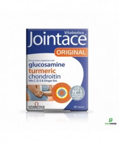 VITABIOTICS Jointace Original VITABIOTICS Jointace Original est une source simple de glucosamine, de curcuma, de chondroïtine de haute qualité et d'une gamme d'oligo-éléments utiles. Maintenir un style de vie actif La santé du cartilage et de l'os est importante pour le bien-être à long terme. Jointace Original a été développé par des experts nutritionnels Vitabiotics et fournit des combinaisons uniques de minéraux, de vitamines et de nutriments, idéales pour ceux qui ont une vie active, dans le sport ou plus tard. Glucosamine et Chondroïtine Outre les oligo-éléments, Jointace Original fournit de la glucosamine présente dans la forme de potassium préférée et une forme de Chondroïtine LMW (faible poids moléculaire) de haute qualité, ainsi que l'extrait de racine de gingembre, un ingrédient botanique bien connu. Traiter des minéraux et des vitamines Le cuivre contribue à la maintenance des tissus conjonctifs normaux. La vitamine D, le zinc et le manganèse aident à maintenir l'os normal. La vitamine D3 est fournie dans sa forme de Cholecalciferol comme produite naturellement par le corps lors de l'exposition à la lumière du soleil. La vitamine C contribue à la formation normale de collagène pour le fonctionnement normal des os et du cartilage. Composition : Sulfate de glucosamine (de crustacé) (sous forme de chlorure de potassium) USP†, maltodextrine, sulfate de chondroïtine sodique (de poisson) USP†, agent de charge : cellulose microcristalline, enrobage du comprimé (hydroxypropylméthylcellulose, polydextrose, triglycérides à chaîne moyenne, glycérine, colorants : carbonate de calcium et Chlorophylline de cuivre [source naturelle]), vitamine C (acide ascorbique), agents anti-agglomérants : dioxyde de silicium, acide stéarique et stéarate de magnésium, vitamine E (succinate de D-alpha tocophéryle) (de soja), extrait de curcuma, vitamine B12 (cyanocobalamine ), sulfate de zinc, sulfate de manganèse, vitamine D3 (cholécalciférol, antioxydant : DL-alpha tocophérol), extrait de racine de gingembre, sulfate de cuivre, acide folique (acide ptéroylmonoglutamique), sélénate de sodium. Conseils d'allergie : Pour les allergènes, voir les ingrédients en gras. Conseils d'utilisation : DEUX COMPRIMÉS PAR JOUR AVEC VOTRE REPAS PRINCIPAL. Avaler avec de l'eau ou une boisson froide. A ne pas croquer. Ne pas dépasser la dose recommandée. Jointace Original contient de la glucosamine provenant de la chitine naturelle. Les diabétiques et ceux qui prennent des anticoagulants (anticoagulants) doivent consulter leur médecin avant d'utiliser ce produit. Cette formule remplace les autres suppléments Jointace®. Une prise régulière est recommandée. Jointace® Original est recommandé avec une alimentation équilibrée, riche en huile de poisson. Le sulfate de glucosamine et le sulfate de chondroïtine utilisés dans Jointace® sont conformes aux normes de pureté de la pharmacopée des États-Unis (USP). Sans colorants artificiels, conservateurs, lactose ou levure. Jointace n'est pas testé sur les animaux