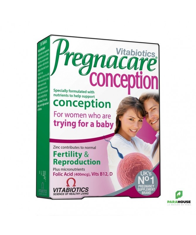 VITABIOTICS Pregnacare Conception Les fabricants de Pregnacare, le principal complément de grossesse au Royaume-Uni, ont développé Pregnacare Conception spécialement formulé pour aider à soutenir une conception saine pour les femmes qui essaient un bébé. Une nutrition experte pour essayer un bébé Maintenant, vous avez décidé d'essayer un bébé, vous souhaitez préparer votre corps et vous assurer d'avoir une alimentation saine et un mode de vie sain pour maximiser vos chances de conception. La formule Pregnacare Conception a été développée sur la base d'études mondiales montrant que certains éléments nutritifs peuvent jouer un rôle important dans la construction de magasins nutritionnels prêts pour la grossesse et pour soutenir une bonne santé reproductive. Pregnacare Conception fournit une formulation complète soigneusement équilibrée de micronutriments, y compris les nutriments spécifiques inositol, l-arginine, n-acétyl cystéine et le sélénium. La formule comprend également la vitamine B12 et l'acide folique à 400mcg, le niveau exact recommandé par le ministère de la Santé. Idéal pour toutes les femmes pour aider à créer des magasins de produits alimentaires avant la conception. Formule nutritive et vitamine, 100% DROM & HORMONE GRATUIT. La formule comprend des éléments nutritionnels clés: Niveau d'acide folique recommandé Pregnacare Conception fournit 400mcg d'acide folique, le niveau exact recommandé par le ministère de la Santé pour toutes les femmes qui essaient de concevoir. L'apport supplémentaire d'acide folique augmente l'état de folate maternel *. Le faible taux de folate maternel est un facteur de risque dans le développement de défauts de tube neural chez le fœtus en développement. En plus de jouer un rôle dans le processus de division cellulaire, l'acide folique contribue également à la croissance des tissus maternels pendant la grossesse. Santé reproductive féminine Certains nutriments peuvent jouer un rôle en aidant à soutenir la santé reproductive chez les femmes. Pregnacare Conception comprend le zinc qui contribue à la fertilité et à la reproduction normales tandis que la vitamine B6 contribue à la régulation de l'activité hormonale. La formule comprend également la vitamine B12, le fer, le magnésium et la vitamine D 15mcg qui ont un rôle dans le processus de division cellulaire. Support nutritionnel complet Pregnacare Conception fournit tout le support rond avec des nutriments supplémentaires, y compris la biotine et le cuivre qui contribuent à la libération d'énergie normale et au fer qui contribue à la fonction normale du système immunitaire et à la formation normale de globules rouges et d'hémoglobine. Les vitamines B6 et B12 sont également importantes pour aider à maintenir le fonctionnement normal du système nerveux. La formule comprend également d'autres nutriments clés; L-Arginine, Inositol, N-Acétyl Cysteine et Betacarotene. Le cycle mensuel et la conception Saviez-vous que certaines femmes peuvent subir des cycles irréguliers lorsqu'elles sortent de la pilule contraceptive, qui peut durer jusqu'à six mois? Le cycle menstruel peut également être perturbé par la perte de poids, le gain de poids, la quantité excessive d'exercice, le choc physique ou émotionnel. Plus d'information Si vous rencontrez un retard dans votre cycle mensuel, cela ne signifie pas nécessairement que vous êtes enceinte et il est conseillé de passer un test de grossesse et de parler à votre professionnel de la santé. Prégnacare Conception est une formule à base de nutriments, recherchée sans médicaments ni hormones. Si votre cycle mensuel n'est pas régulier, nous vous recommandons de consulter votre médecin ou professionnel de la santé. Composition : Ingrédients : maltodextrine, agent de charge : cellulose microcristalline, vitamine C (acide ascorbique [supports : hydroxypropylméthylcellulose et acide tartrique]), oxyde de magnésium, inositol (support : acacia), N-acétyl cystéine, enrobage du comprimé (hydroxypropylméthylcellulose, hydroxypropylcellulose, caprique/caprilique Triglycérides, colorants [dioxyde de titane, oxydes de fer], glycérine), fumarate ferreux, sulfate de zinc, vitamine B12 (sous forme de cyanocobalamine [supports : citrate trisodique, acide citrique, maltodextrine]), agents anti-agglomérants : dioxyde de silicium, acide stéarique et magnésium Stéarate, niacine (sous forme de nicotinamide), coenzyme Q10 (CoQ10), bêtacarotène (supports : amidon, eau, antioxydant : DL-alpha tocophérol), thiamine (vitamine B1 sous forme de mononitrate), vitamine B6 (sous forme de HCl), vitamine D3 (cholécalciférol [ Supports : acacia, saccharose, amidon de maïs, triglycérides à chaîne moyenne, antioxydant : DL-alpha tocophérol]), acide pantothénique (sous forme de sel de calcium), riboflavine (vitamine B2), vitamine E (sous forme de succinate d'acide de D-alpha tocophéryle) (de soja ) , sulfate de cuivre, acide folique (sous forme d'acide ptéroylmonoglutamique), iodure de potassium, biotine, sélénate de sodium. Conseils allergènes : Pour les allergènes, voir les ingrédients en gras. Conseils d'utilisation : UN COMPRIMÉ PAR JOUR, AVEC VOTRE REPAS PRINCIPAL Avaler avec de l'ea u ou une boisson froide et prendre avec un repas principal. A ne pas croquer. Ne pas dépasser l'apport recommandé. A prendre uniquement le ventre plein. Il n'est pas nécessaire de prendre une multivitamine supplémentaire. Un changement dans le cycle mensuel a été remarqué par certaines femmes en même temps que l'utilisation de ce produit (voir la section « À propos de la prise de Pregnacare Conception » ci-dessous). Utilisez Pregnacare® Conception dès que vous commencez à essayer d'avoir un bébé. Pour aider à préparer votre corps, il peut même être utilisé jusqu'à 3 mois avant de commencer à essayer d'avoir un bébé. Une fois confirmée que vous êtes enceinte, vou