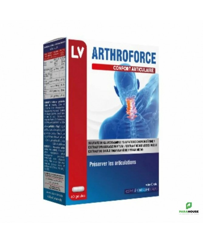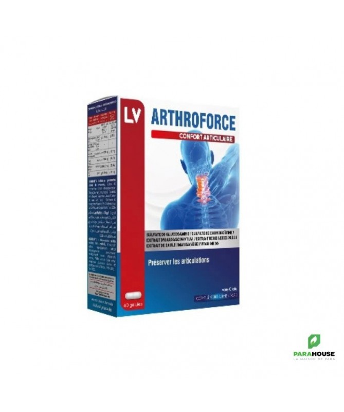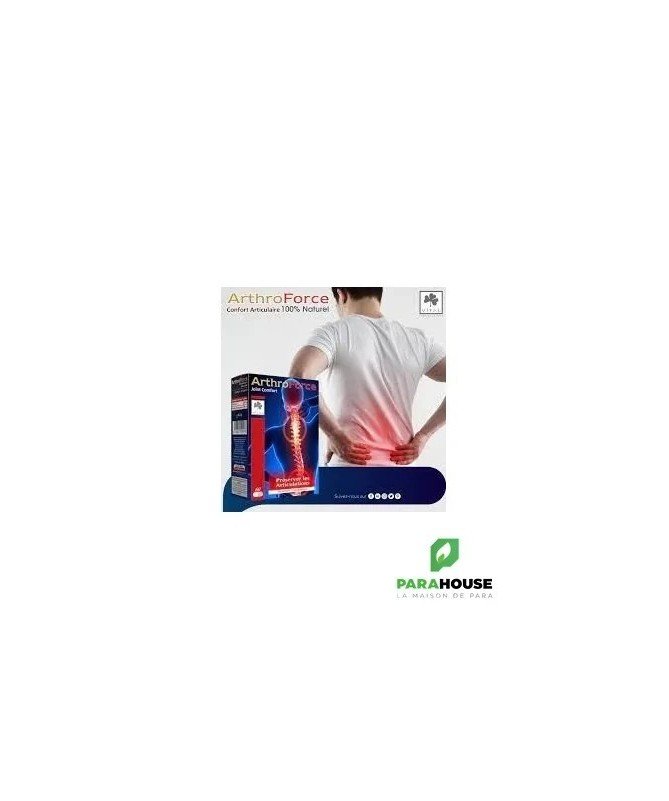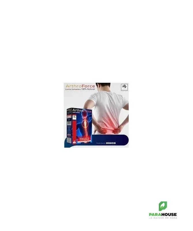 VITAL ARTHROFORCE Gélules B/60 VITAL ARTHROFORCE est un complement alimentaire pour des articulations souples et confortables : Douleurs articulaires, arthrose, Arthrite, Tendinite Composition: La glucosamine fabriquée à partir du glucose et de la glutamine, un acide aminé. La glucosamine produite joue un rôle determinant dans le maintien de l'intégrité du cartilage de l'ensemble des articulations. Lorsque le processus de fabrication de la glucosamine se dérègle ,les cartilages se mettent à dégénérer. Harpagophytum procumbens dont les indications sont principalement: La polyarthrite chronique inflammatoire, Les douleurs lombaires, Les rhumatismes des tissus articulaires. Extrait d'harpagophytum procumbens : contient des harpagosides qui contribuent au confort articulaire et soulage naturellement les articulations. Conseils d'utilisation: 2 gélules le matin 2 gélules de ARTHROFORCE le soir aprés repas.