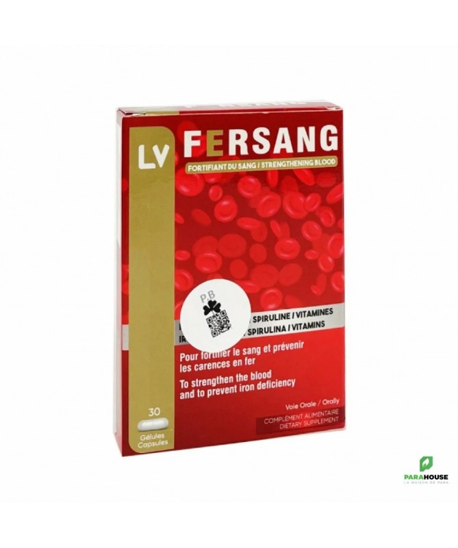 VITAL FERSANG Fortifiant du Sang VITAL FERSANG est indiqué pour la prévention de la carence martiale. Si vous êtes un adulte, un enfant ou une femme enceinte, votre organisme a besoin de fer. VITAL FERSANG est un agent anti-anémique qui vous permet de restaurer vos réserves en fer de manière sûre et efficace. VITAL FERSANG fournit à votre corps du fer pour soutenir le fonctionnement efficace de plusieurs systèmes, dont le système immunitaire, les organes, les muscles et plus encore. Avec un faible risque de constipation, il restitue les réserves en fer et fortifie le sang. COMPOSITIONS : Vitamine C, Fer (fumarate de fer), Spiruline, Vit B5, B6, B2, B1, Vitamine A, Vitamine B9, Sélénium, Vitamine B8, Vitamine B12 Conseils d'utilisation : Il est indiqué de prendre 1 à 2 gélules de FERSANG par jour pendant au moins un mois.