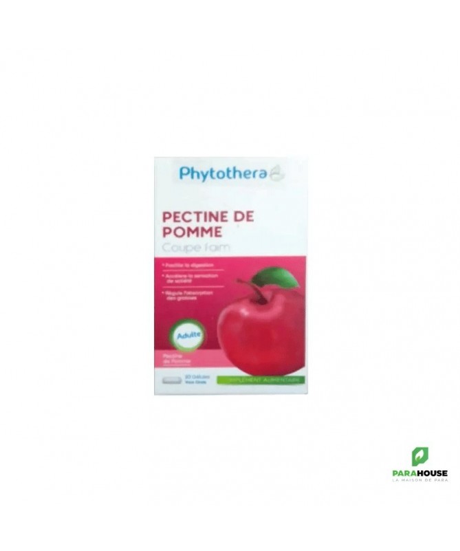 Phytothera PECTINE DE POMME La pectine est un type de fibres dite solubles. Elle possède la propriété de former un gel, ce qui confère en partie leur texture aux confitures et aux gelées de fruits. Elle représente environ la moitié de la quantité totale de fibres contenues dans la pomme, surtout dans la pelure. Par leur capacité de former un gel, ces fibres solubles pourraient lier, en partie,le sucre et le cholestérol dans l’intestin et ainsi, en réduire l’absorption. Hypercholestérolémie: Deux études ont démontré une diminution significative du cholestérol dans le sang chez le rat lorsqu’on lui administrait de la pectine de pomme. Cela s’expliquerait par la plus grande quantité de cholestérol éliminé dans les selles. Dans le cadre de deux études réalisées chez l’humain dans les années 1990; les chercheurs ont observé une baisse du cholestérol sanguin, en particulier du mauvais cholestérol, avec la consommation de pectine de pomme. Cela était plus marqué chez les sujets ayant consommé la plus grande quantité de fibres solubles Phytothera PECTINE DE POMME : Coupe faim Piège les sucres et les graisses Accélère la sensation de satiété Conseils d'utilisation : Prendre 1 gélule midi, et 1 gélule le soir une demi Heure avant repos