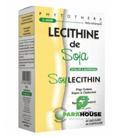 La Lécithine de Soja : Est un émulsifiant de corps gras qui permet de piéger les quantités de Matières grasses contenues dans les aliments les empêchant ainsi de passer dans l'organisme. C'est un complexe phospholipidique naturel extrait du soja qui intervient dans les mécanismes de transport des lipides plasmatiques et de métabolisme du cholestérol. Elle représente aussi un bon stimulant de mémoire et de l'activité mentale pour les étudiants et les personnes âgées en période de surmenage. Les composants de la lécithine de Soja (Les phospholipides) sont indispensables pour les membranes des cellules nerveuses. De plus, elles constituent un apport en phosphore et en Vitamines A et E (un puissant anti-oxydant et hypo-lipémiant).INDICATIONSRégule le bilan lipidique (Cholestérol + TG),Booste le système immunitaireRéduit le cholestérol et prévient les maladies cardiovasculairesRalentit le déclin cognitif, Améliore l’arthrite rhumatoïdePrévient le cancer, Améliore la gêne respiratoireStimule le système immunitaire.COMPOSITIONSPhosphatidylcholine de sojaCONTRE INDICATIONSAucuneFORMEGéluleINFOS SUR LE PRODUITBoite de 45 gélulesConseils d'utilisation1 gélule 3 fois par jour avant repas