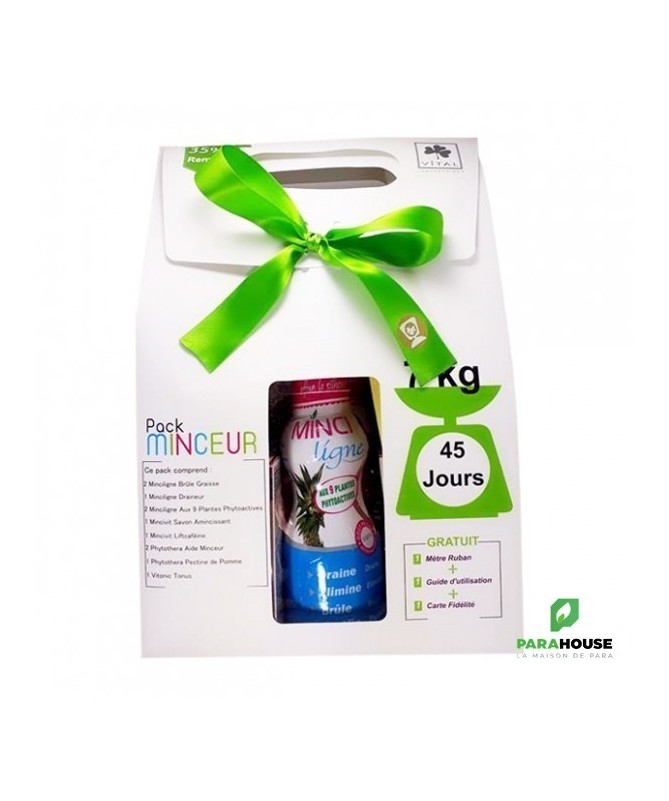Le Pack Minceur - Perdre 7 Kg en 45 Jours de Vital est un pack composé de 11 soins complémentaires:MINCILIGNE BRULE GRAISSEMINCILINGE DRAINEURMINCILIGNE AUX 9 PLANTES PHYTOAVTIVESMINCILIGNE COUPE FAIMMINCIVIT LIFCAFEINEPHYTOTHERA AIDE MINCEURPHYTOTHERA PECTINE DE POMMEVITONIC TONUSNB : Un Mètre Ruban, Un Guide d'utilisation et Une Carte de Fidelité sont Offerts