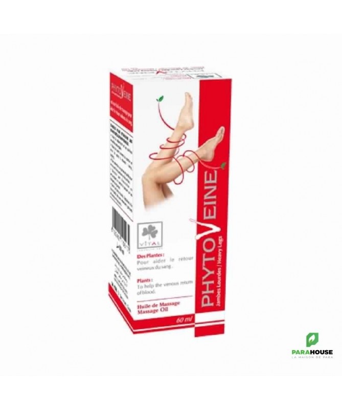 VITAL PHYTOVEINE Huile 60ML VITAL PHYTOVEINE Huile est une huile de massage qui améliore la circulation sanguine des jambes. L'huile est enrichie en huiles naturelles pour apaiser les douleurs des jambes lourdes. Composition : Huile essentielle de Citron, Huile essentielle de Menthe, Huile essentielle de Lavande, Huile essentielle de Cyprès, Menthol Conseils d'utilisation : Il est conseillé de faire 2 applications par jour matin et soir en massant de bas en haut