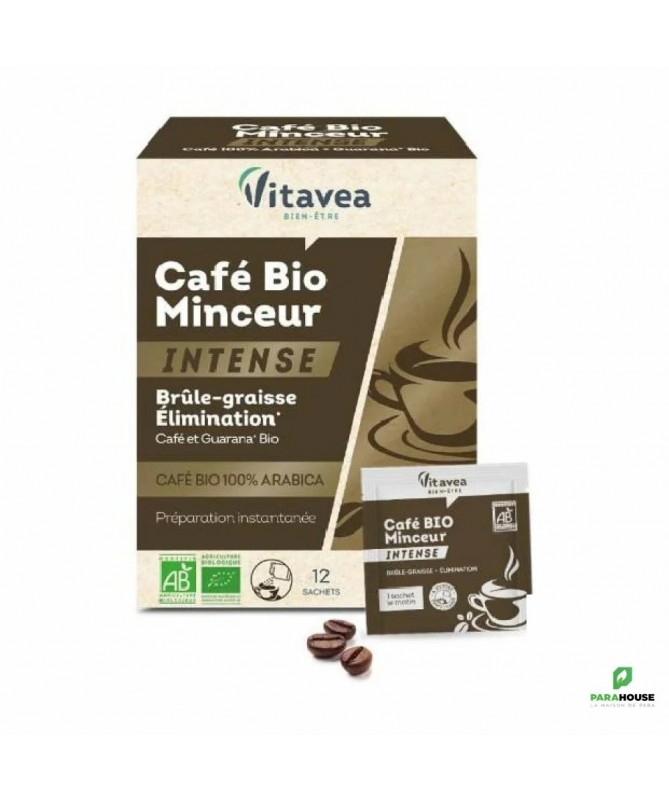 VITAVEA CAFE BIO MINCEUR VITAVEA CAFE BIO MINCEUR contient plus de caféine que le café grace à la présence de GUARANA dans sa composition et aide à brûler et à évacuer les graisses pour éliminer ainsi les graisses de réserve. VITAVEA CAFÉ BIO MINCEUR apporte une véritable aide lors d'un programme minceur pour une silhouette affinée. Cette préparation instantanée, enrichi en guarana et en café arabica, aide à brûler les graisses de réserve, augmenter les dépenses énergétiques, affiner la silhouette et garder la ligne. Cette préparation instantanée est 100% naturelle et BIO. Facile à préparer, ce café offre une pause plaisir tout en s’intégrant parfaitement à un mode de vie sain. Idéal pour accompagner un programme minceur, il allie efficacité et plaisir gustatif. Composition : Café arabica soluble (Coffea arabica) 92,5% ; extrait de guarana (Paullinia cupana, enrichi en caféine naturelle issue de café) 7,5%. Conseils d'utilisation : Au petit déjeuner, verser 1 sachet dans une tasse ou un mug selon l'intensité désirée. Ajouter de l'eau frémissante. Il est déconseillé en cas d'intolérance à la caféine et pendant la grossesse et l'allaitement.