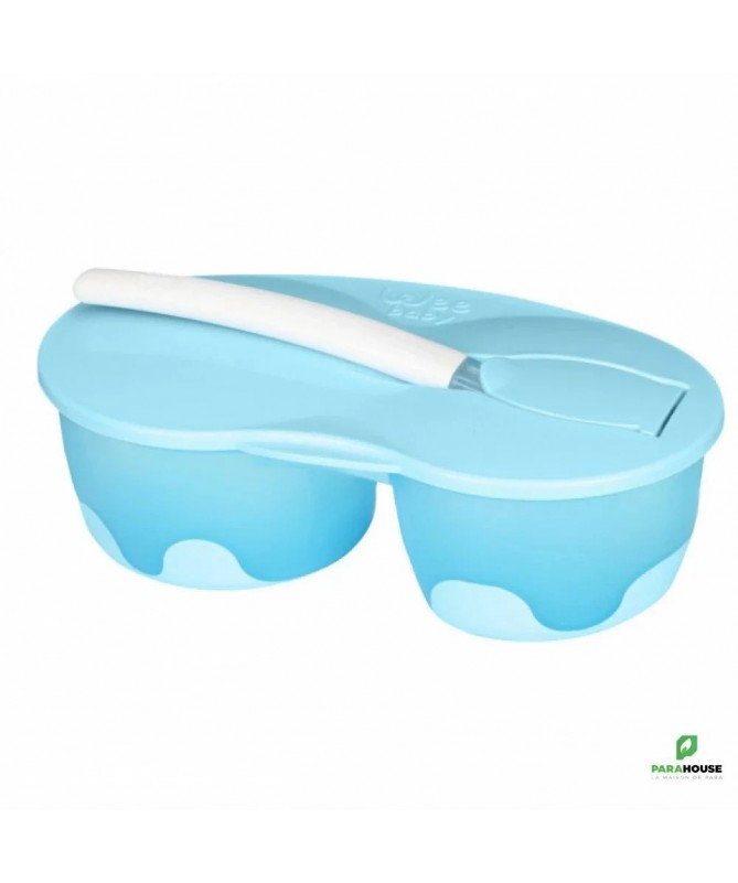 WEE BABY SET BOL A DEUX COMPARTIMENTS ET CUILLERE - 866 WEE BABY SET BOL A DEUX COMPARTIMENTS ET CUILLERE est spécialement conçu pour faciliter le repas au maximum. Les compartiments séparés empêchent les aliments de se mélanger et, grâce à sa base antidérapante, il est facile de nourrir bébé. Il peut également servir de boîte de rangement, ce qui le rend parfait pour les voyages. De plus, son couvercle anti-déversement et anti-fuite ainsi que sa cuillère à clipser vous permettent de l'emporter avec vous en toute sécurité et de manière hygiénique sans aucun souci. La conception à double section permet de conserver les aliments séparément. Peut également servir de boîte de rangement. Convient pour les voyages. Garde les repas frais. La cuillère à clipser le maintient hygiénique. Facile à utiliser avec une base antidérapante Fabriqué à partir de matériaux sans BPA : Sans BPA, fabriqué selon les normes de la FDA. Fabriqué à partir de silicone sûr :Le silicone est inodore, transparent et sans goût. Il résiste à la traction et est facile à nettoyer.