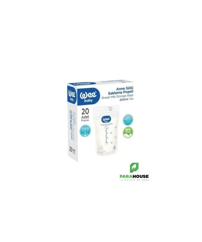 Lot de 20 sacs de stockage du lait maternel WEE Baby, avec son emballage stérile, son système de double verrouillage étanche et adapté au congélateur, il sera bénéfique pour le stockage sain du lait maternel.