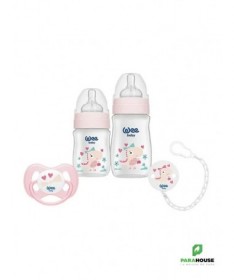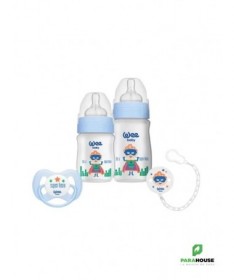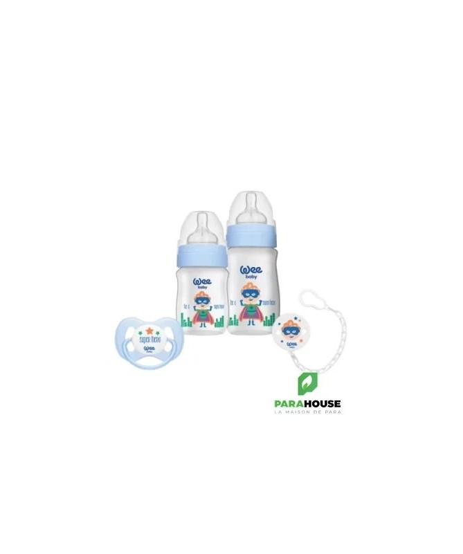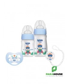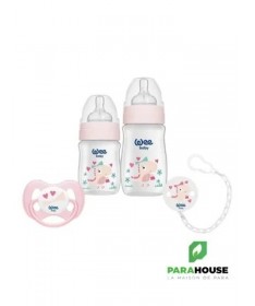 Cooffret Baby Care - Biberons et AccessoiresLecoffret Baby Carecontient tout ce dont vous avez besoin pour le confort et la praticité de votre bébé au quotidien. Ce coffret comprend deux biberons, l’un de 150 ml et l’autre de 250 ml, enpolypropylène (PP)de haute qualité, avec un col large pour une alimentation facile et sans fuite. Les biberons sont conçus pour être ergonomiques et permettent un nettoyage facile.Le coffret comprend également unesucette papillon n°1, idéale pour apaiser votre bébé, ainsi qu'unechaîne de sucette à motifspratique pour ne jamais perdre la sucette et l'avoir toujours à portée de main. Ce set complet est parfait pour les jeunes parents à la recherche de produits sûrs et pratiques pour leur bébé.