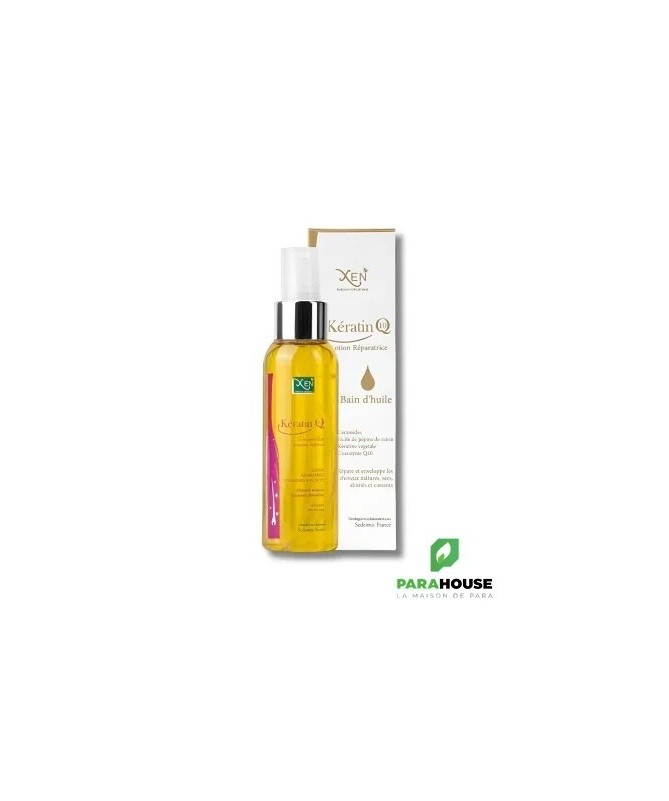 XEN KERATIN Q10 LOTION REPARATRICE 60ML XEN KERATIN Q10 LOTION REPARATRICE pour longueurs et pointes Kératin Q10 est un produit de soin capillaire spécialement formulé pour nourrir et réparer les cheveux matures, abîmés ou fragilisés par des traitements dermatologiques asséchants. Cette lotion contient des actifs innovants tels que la coenzyme Q10, la kératine végétale et la kératine Q10 qui stimulent la racine des cheveux pour activer la production de deux types de kératine qui diminuent avec le temps. XEN KERATIN pour cheveux répare les longueurs et les pointes abîmées tout en lissant la fibre capillaire et en prévenant les frisottis. Elle améliore également le volume, la brillance et la tenue capillaire pour des cheveux en meilleure santé et plus beaux. PRINCIPES ACTIFS : L'innovation CoenzymeQ10 stimule la racine des cheveux pour activer la production des deux kératines qui diminue avec le temps. Kératine végétale Conseils d'utilisation: Pour une utilisation optimale, il est recommandé d’appliquer le bain d’huile Kératin Q10 une à trois heures avant le shampoing, deux à trois fois par semaine. La composition de ce produit contient des ingrédients nourrissants tels que l’huile de pépins de raisin, l’isopropyl myristate et le tocophérol acétate pour une hydratation en profondeur Utilisé régulièrement, ce produit peut aider à améliorer l’apparence globale des cheveux pour des résultats visibles. heveux pour des résultats visibles
