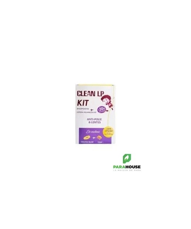 Kit Clean LP Shampooing & Lotion Assainissant contient : Clean LP Shampooing Anti-poux et Lentes est conseillé pour éliminer les poux et les lents chez l’enfant dés 6 mois et l’adulte et pour éradiquer l’infestation de poux. Il respecte le cuir chevelu sensible des enfants. Il est efficace, doux et non toxique, permettant d’éliminer les poux de tête et de stopper le développement des lentes. Clean Lotion Assainissant, élimine les poux et les lentes. Elle exerce une double action physique, elle s’attaque aussi bien aux poux qu’aux lentes, elle se fixe sur les orifices respiratoires des parasites, les étouffe, les déshydrate, les tue. Peigne Chouchou répulsif
